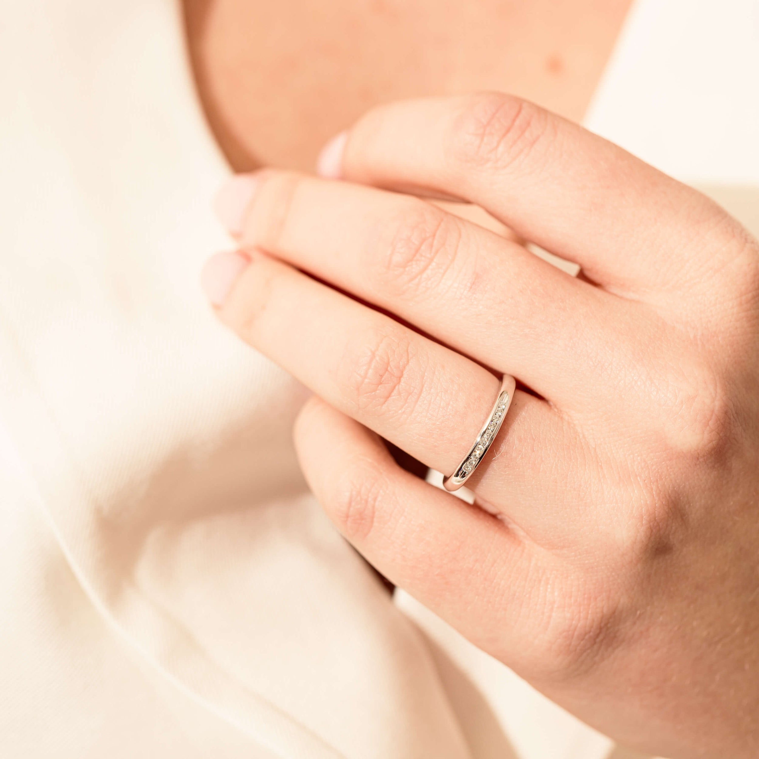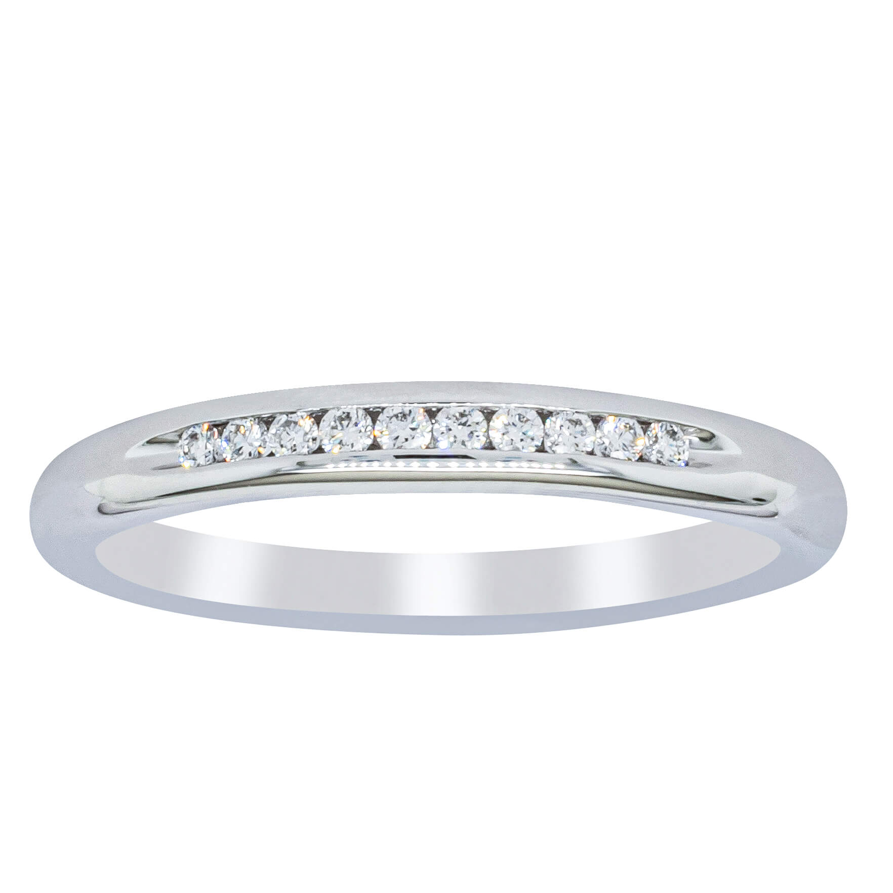 Beautifully crafted in high palladium 18ct white gold, this timeless eternity band from our signature 1899 collection features ten channel set round brilliant cut diamonds which rest in a stylish tapering band.