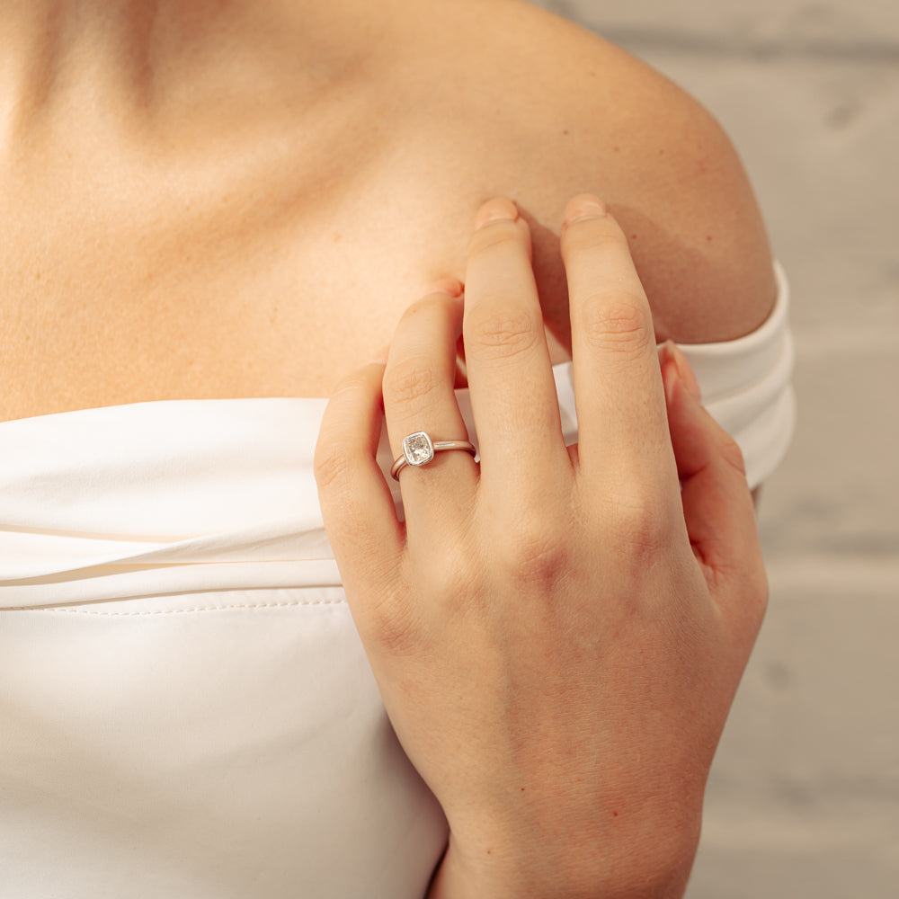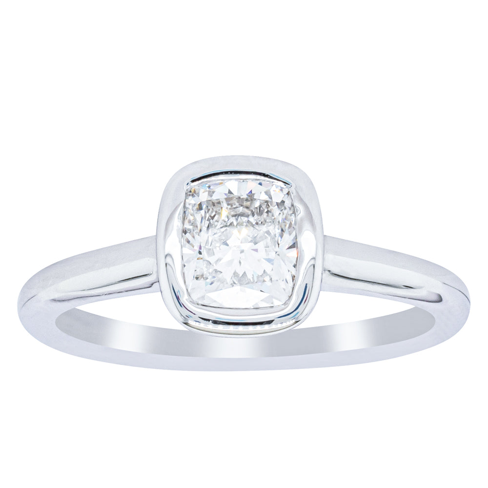 A refined, minimalist bezel frames and draws the eye to the sparkling gemstone at the centre.