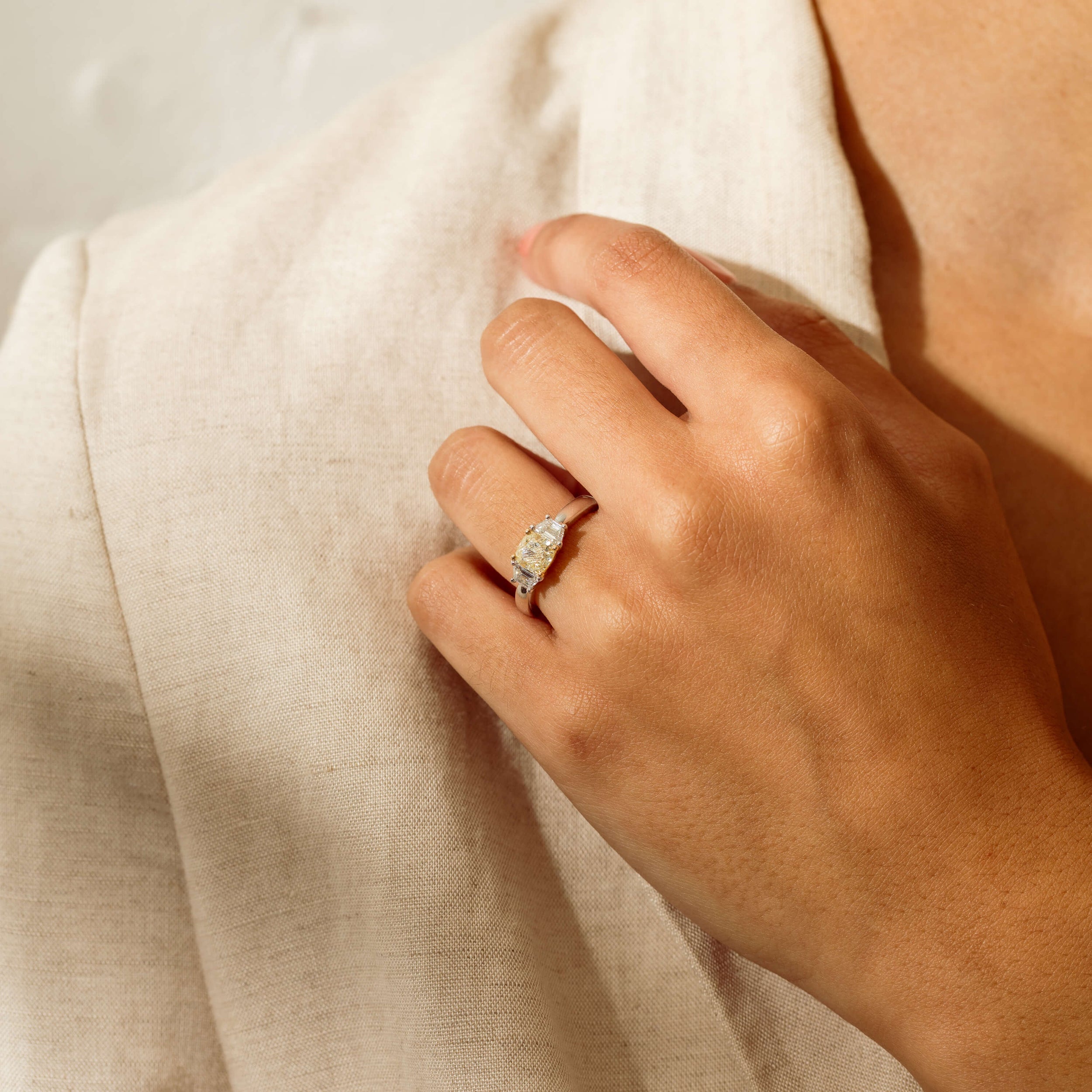Model wearing natural diamond and gemstone jewellery from the 1899 Collection