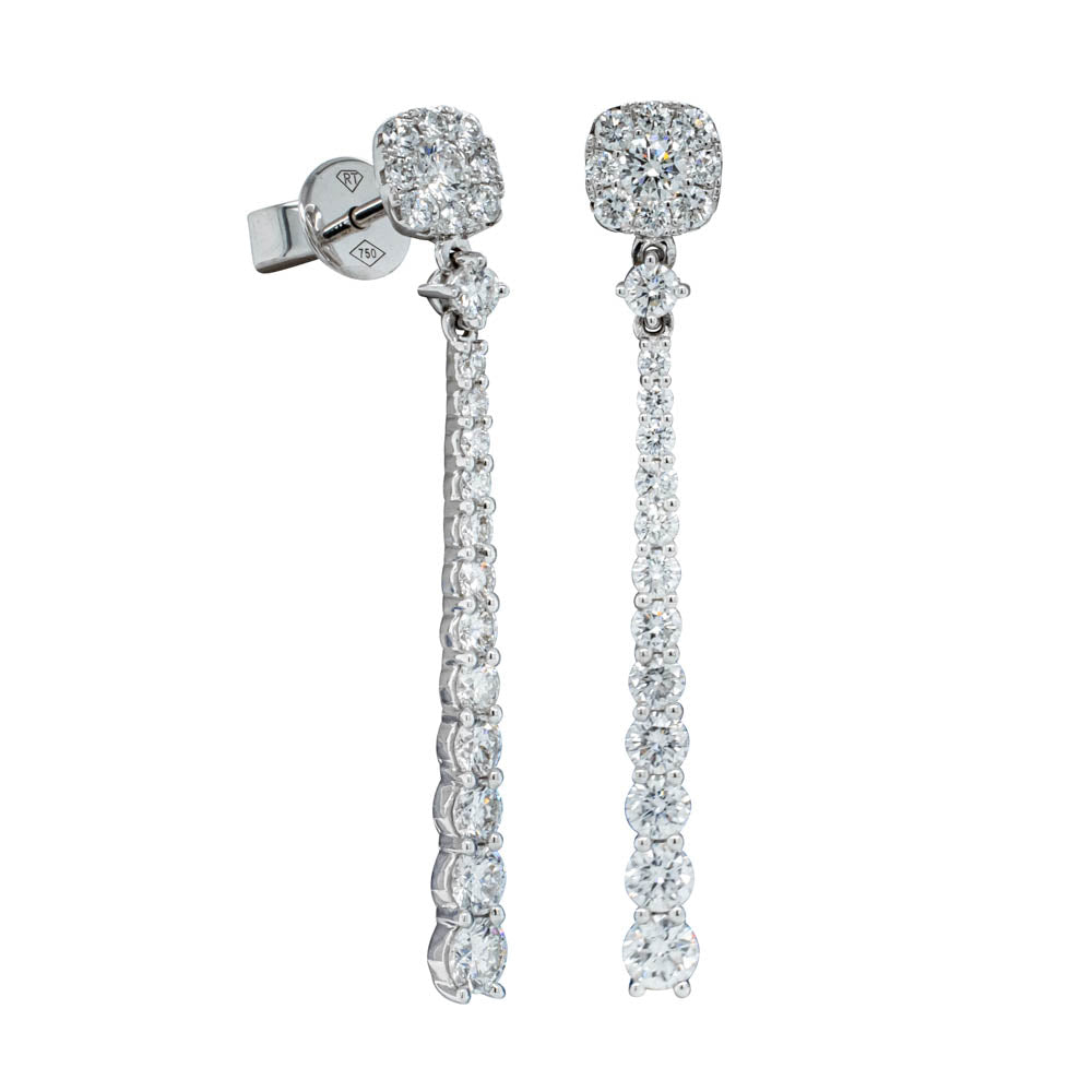 18ct White Gold Diamond Long Cluster Drop Earrings