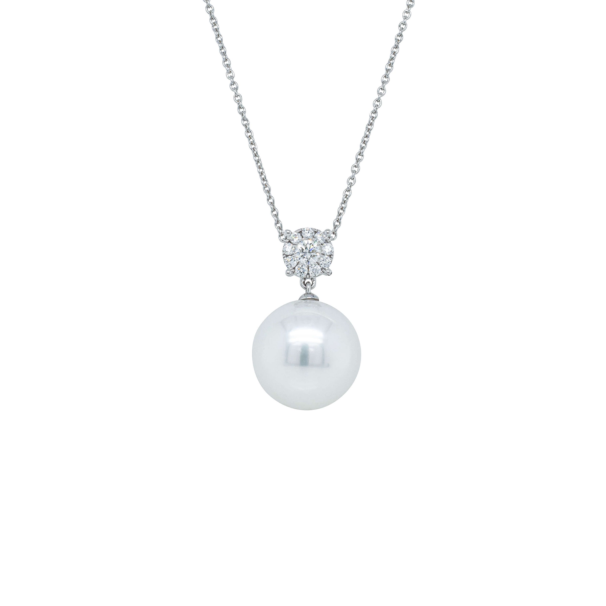 Carefully crafted in 18ct white gold from our signature 1899 collection, this gorgeous pendant boasts a spectacular 14.5mm South Sea pearl with dazzling white diamonds.