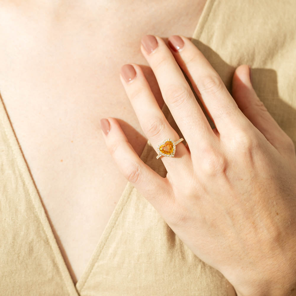 Brilliant in colour, this heart shaped golden sapphire from Sri Lanka combines with exceptional sparkle to make a luminous statement in this gorgeous Sierra ring from our signature 1899 collection.