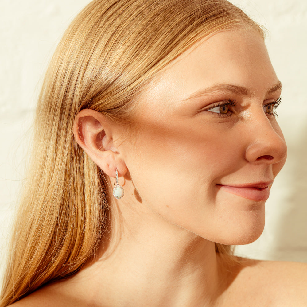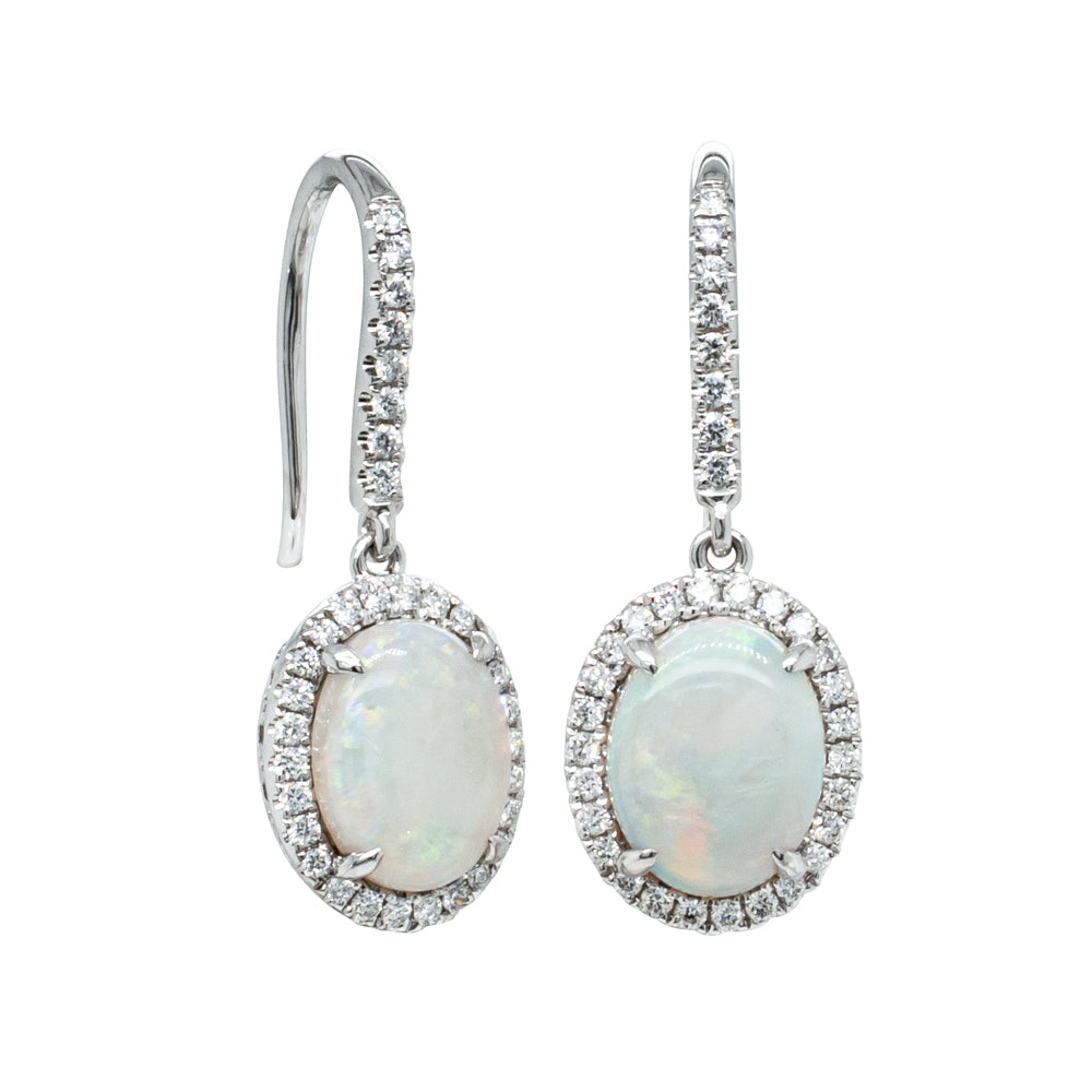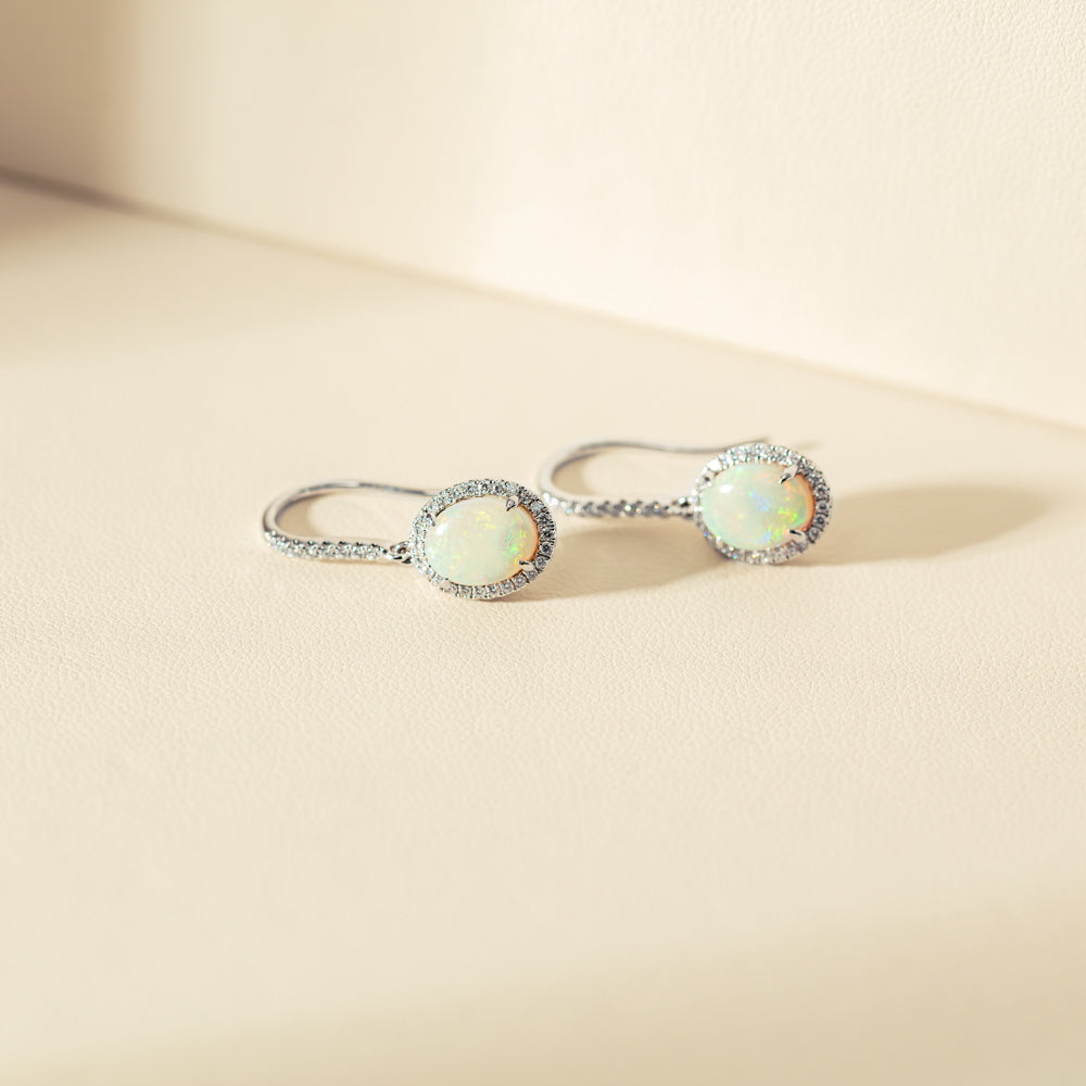 View BagThese opal and diamond earrings featuring oval faceted opals framed by round brilliant cut diamonds make a luminous statement in these gorgeous Sierra earrings from our signature 1899 collection.