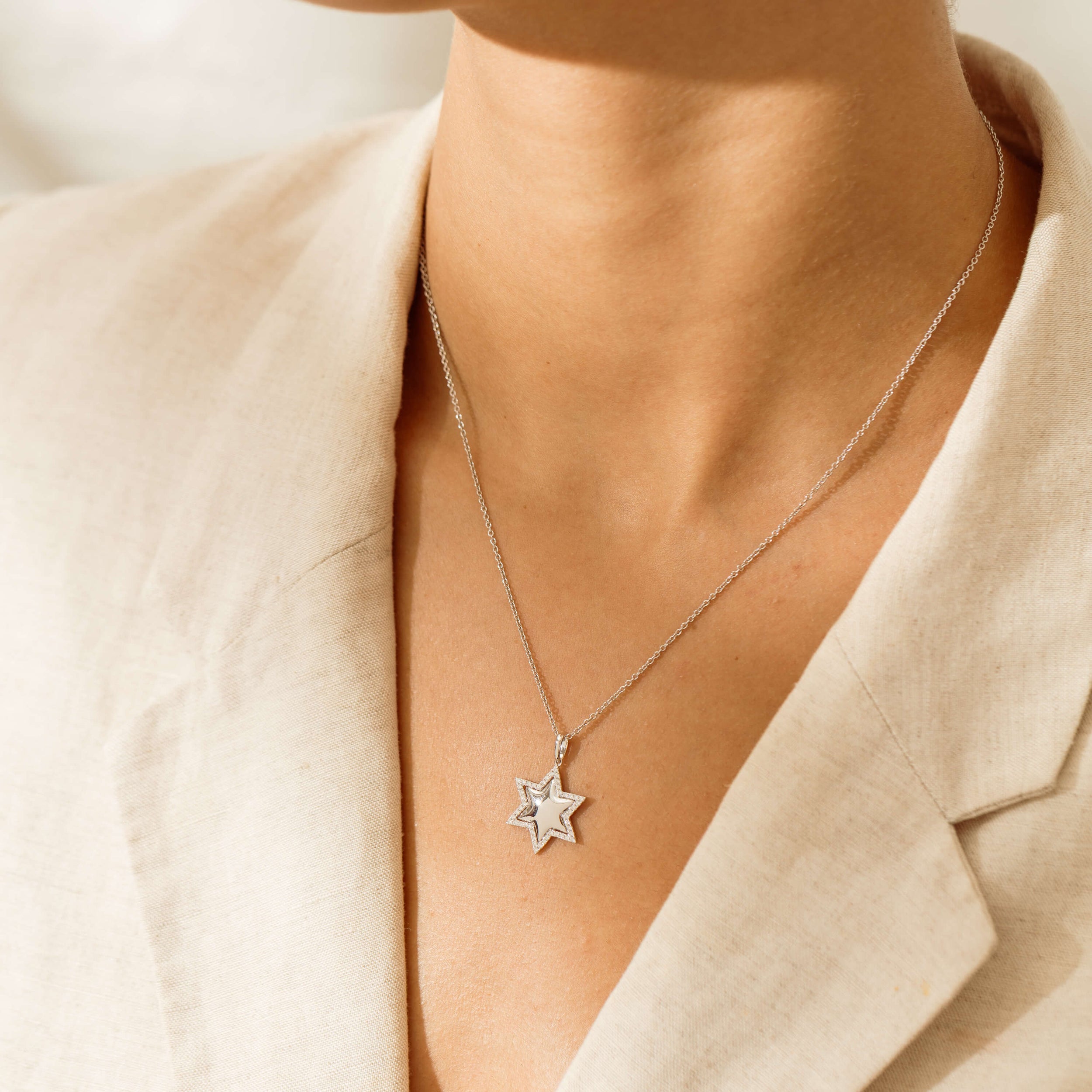 Beautifully crafted to perfection from divine 18ct white gold, this stunning Selena Christmas Star pendant boasts forty eight dazzling round brilliant cut diamonds with a total diamond weight of .25cts.