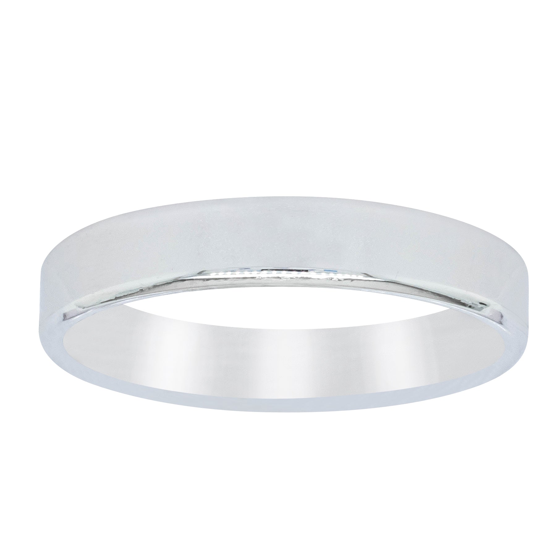 This classic 18ct white gold ring is 3.5mm wide and has a square profile edge. Available in a standard polished finish (as pictured) or brushed.