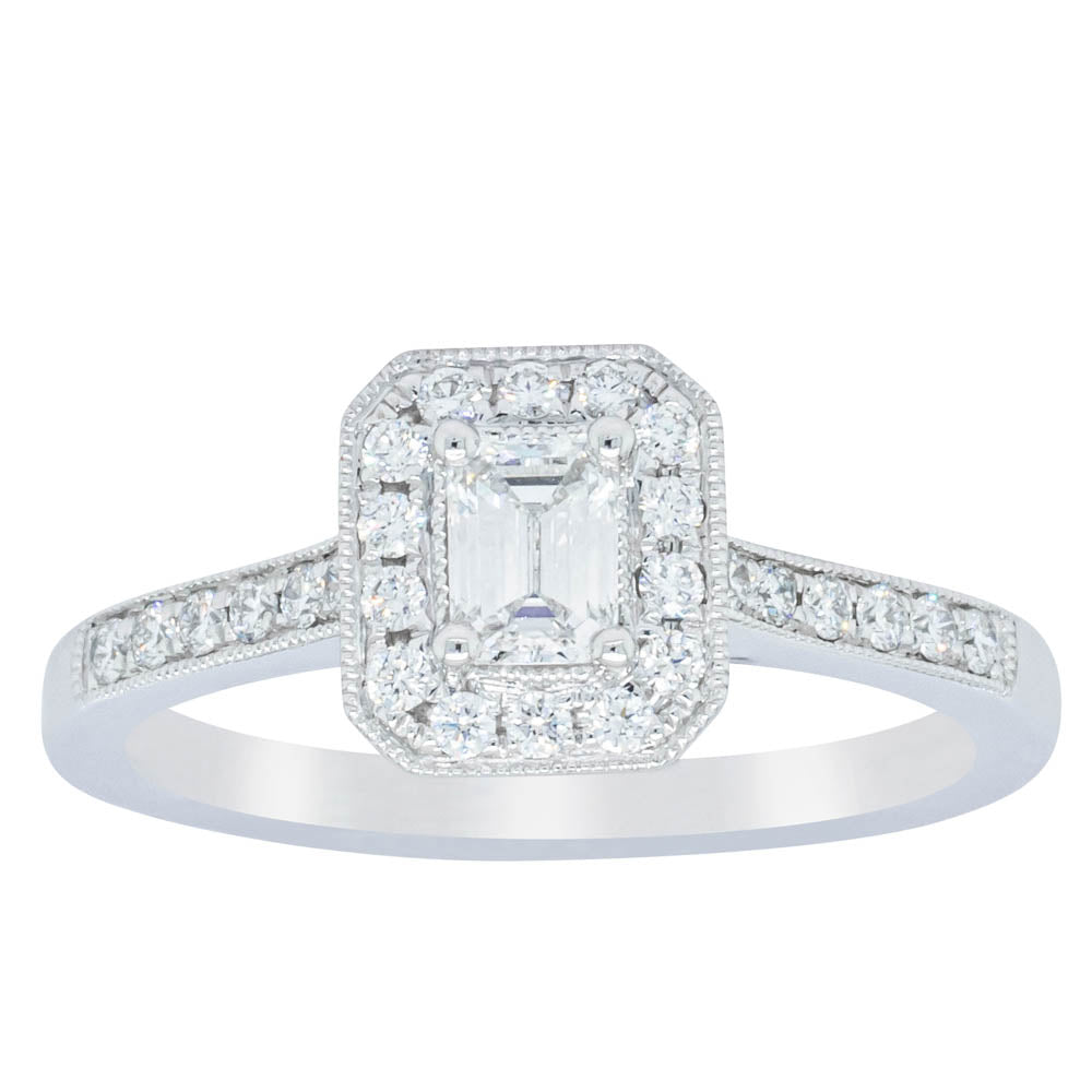 Aria sings with romantic features, a delicate bead set diamond halo and milgrain detailing all highlight an elegant emerald cut diamond. As a song written for one, Aria encompasses the unity of two paths combining to become the single way forward.  A reminder to always focus on what is most important, clarity is derived from the linear and open facets which display broad flashes of light.  Intricate milgrain edges and high quality accent diamonds harmonise to elevate this masterpiece.
