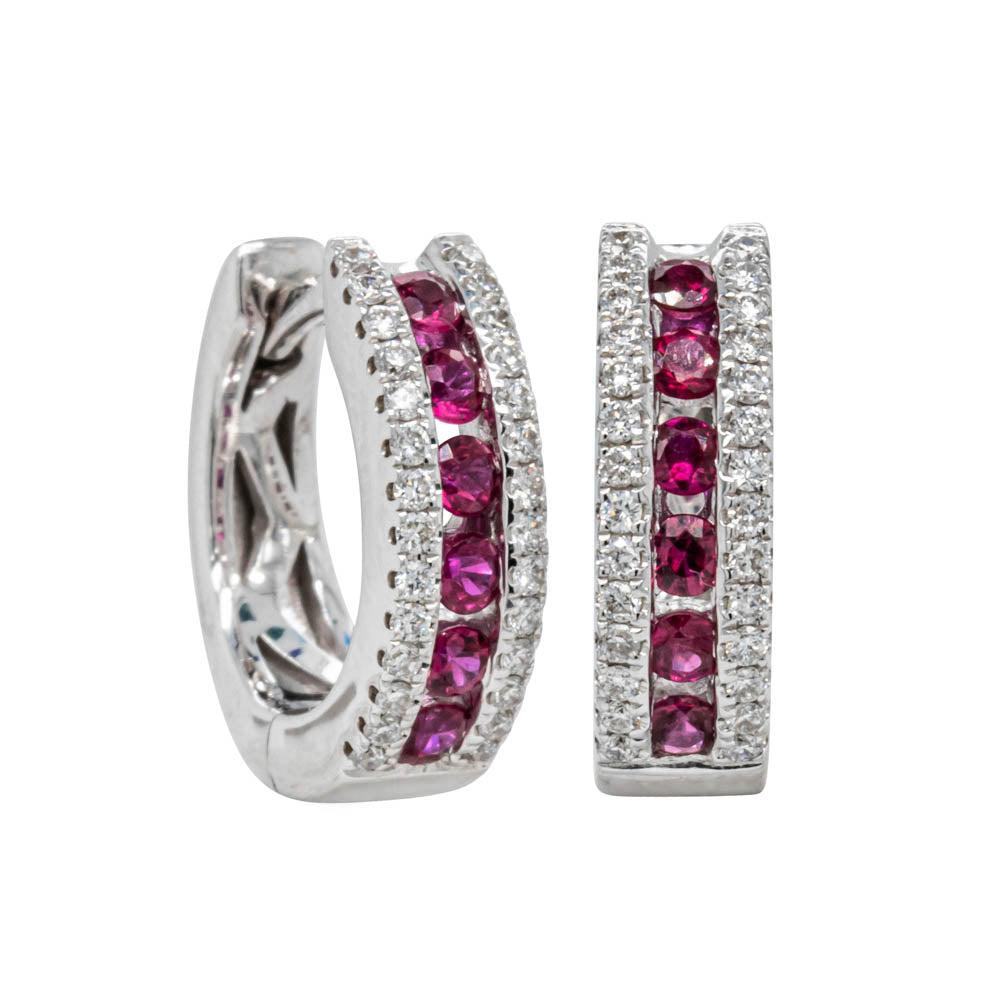 18ct White Gold .36ct Ruby & Diamond Hoop Earrings