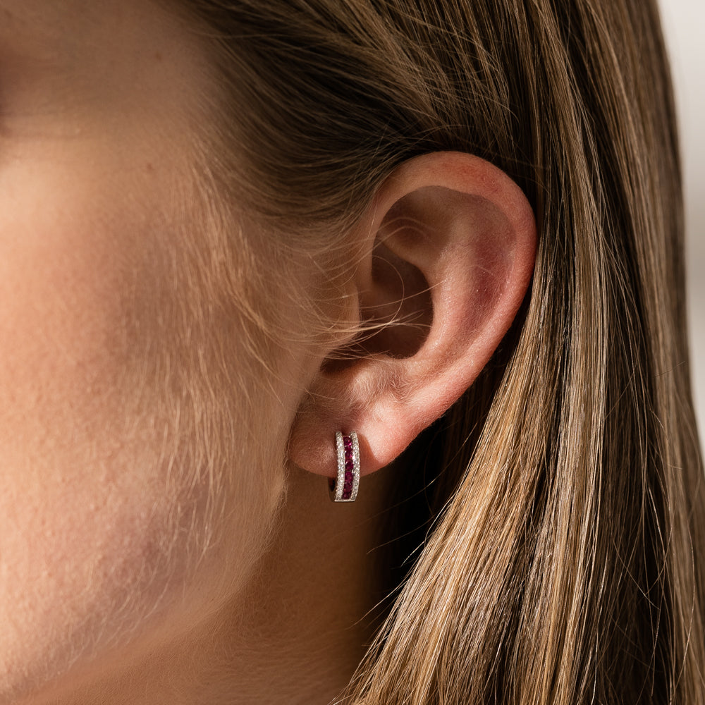 You will absolutely glow in these beautiful 18ct white gold and ruby hoop earrings. Boasting bright red rubies and twinkling white diamonds, it is the perfect earring to spoil yourself with.