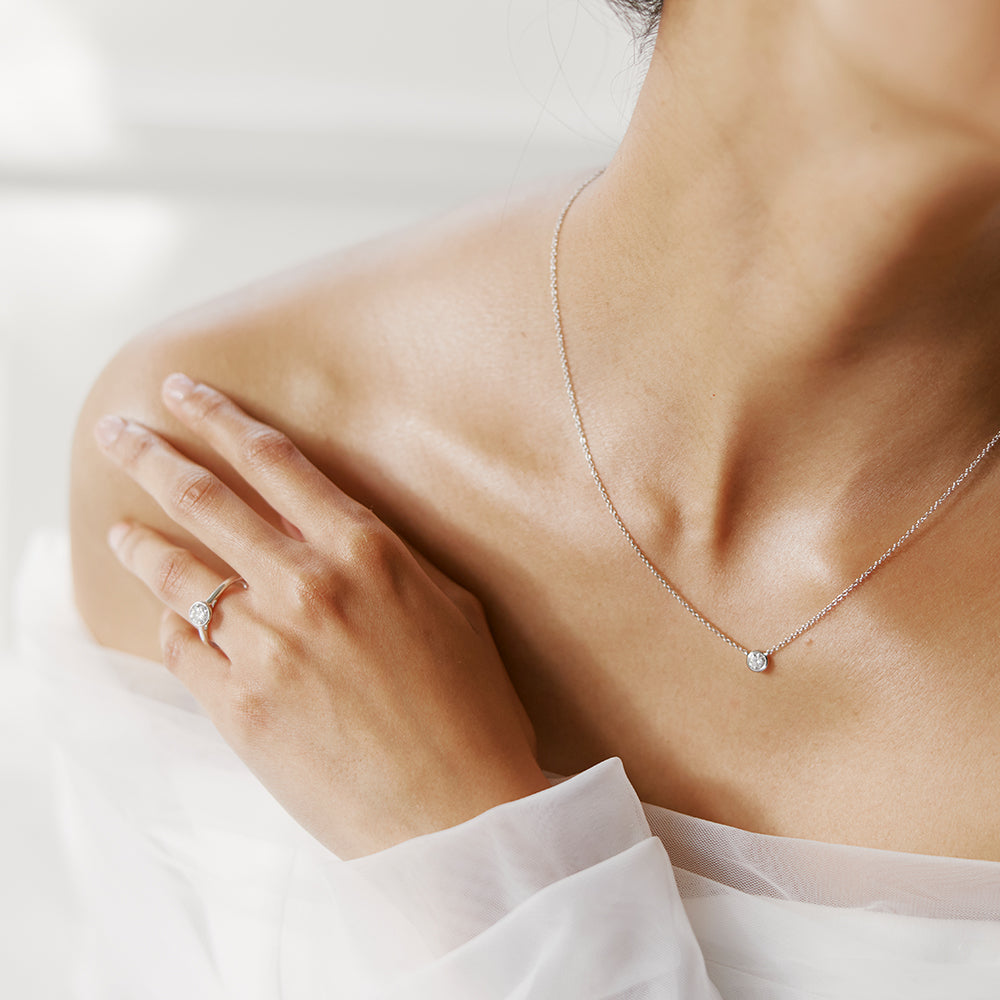 A refined, minimalist bezel frames and draws the eye to the sparkling gemstone at the centre.