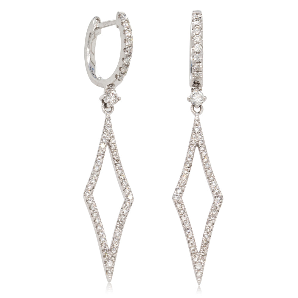 18ct white gold earrings featuring one hundred and ten round brilliant cut diamonds with a total diamond weight of .57cts.