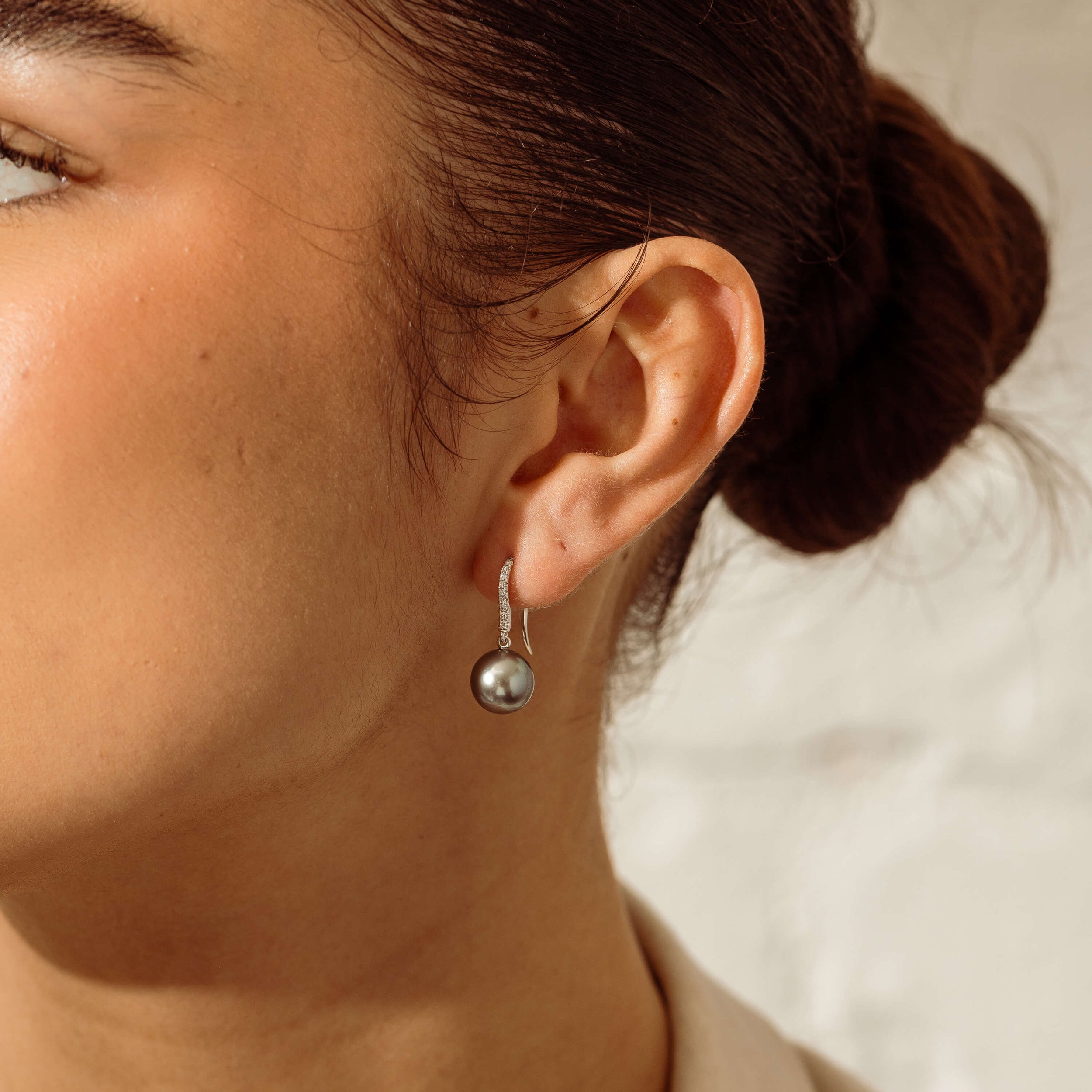 18ct White Gold 9-10mm Black Pearl & Diamond Drop Earrings