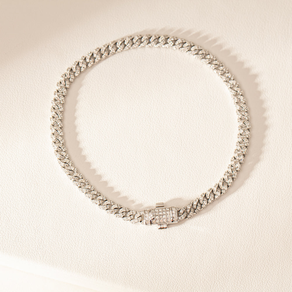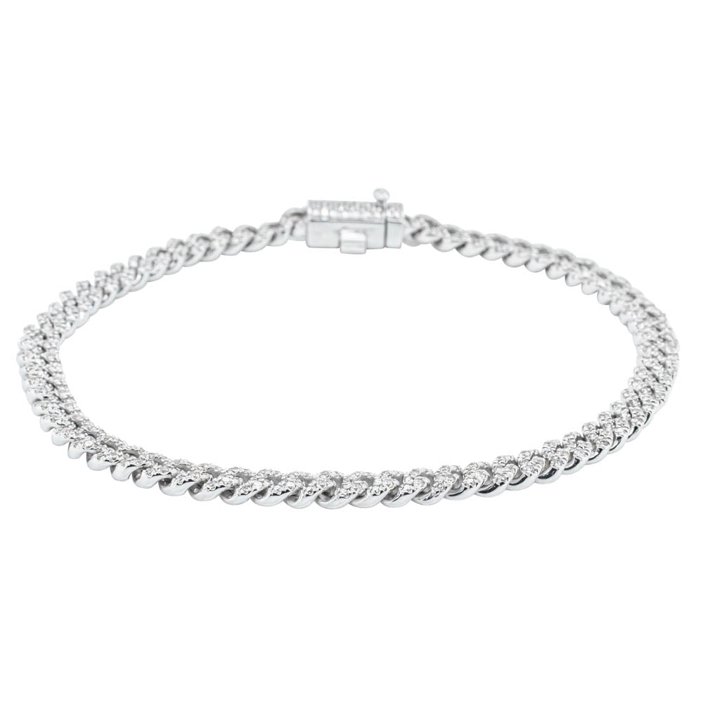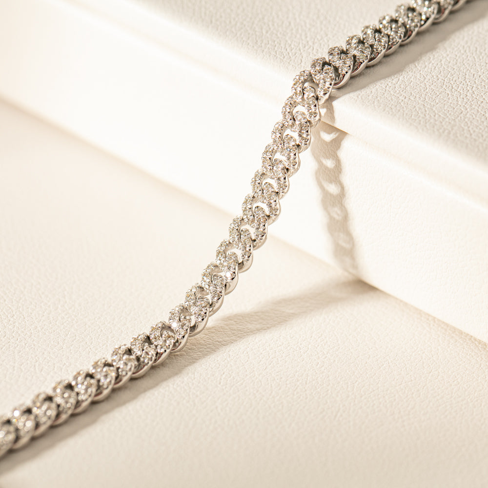 Add gorgeous gleam to your wrist with this diamond curb link bracelet crafted from 18ct white gold. 412 round brilliant cut diamonds encircle the bracelet, adding sparkling luxury.