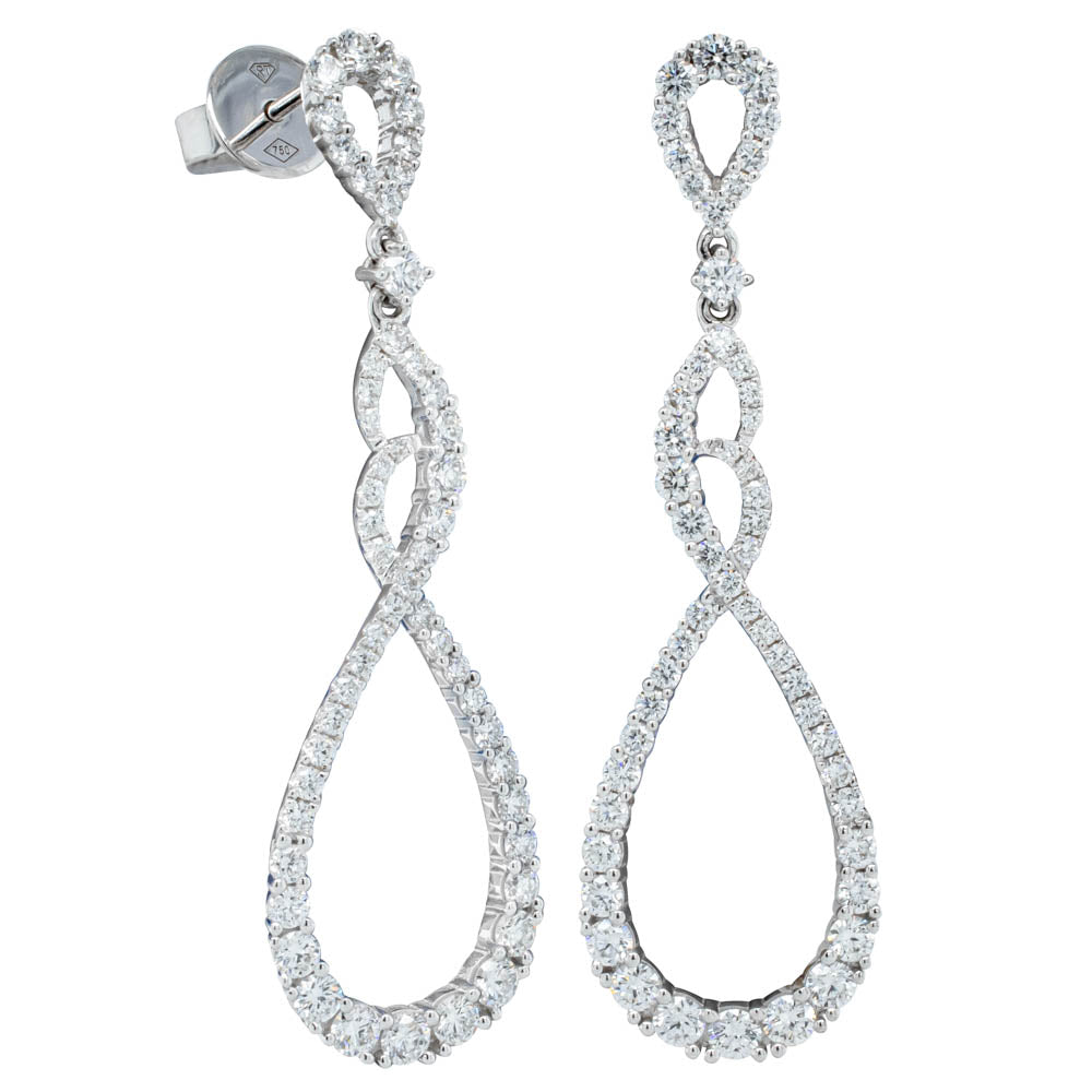 18ct White Gold Diamond Twisted Loop Drop Earrings