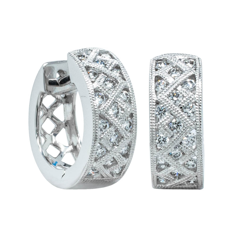 Adding resplendent sparkle, these 18ct white gold honour hoop earrings from our signature 1899 collection feature round brilliant cut diamonds set with millgrain detailing.