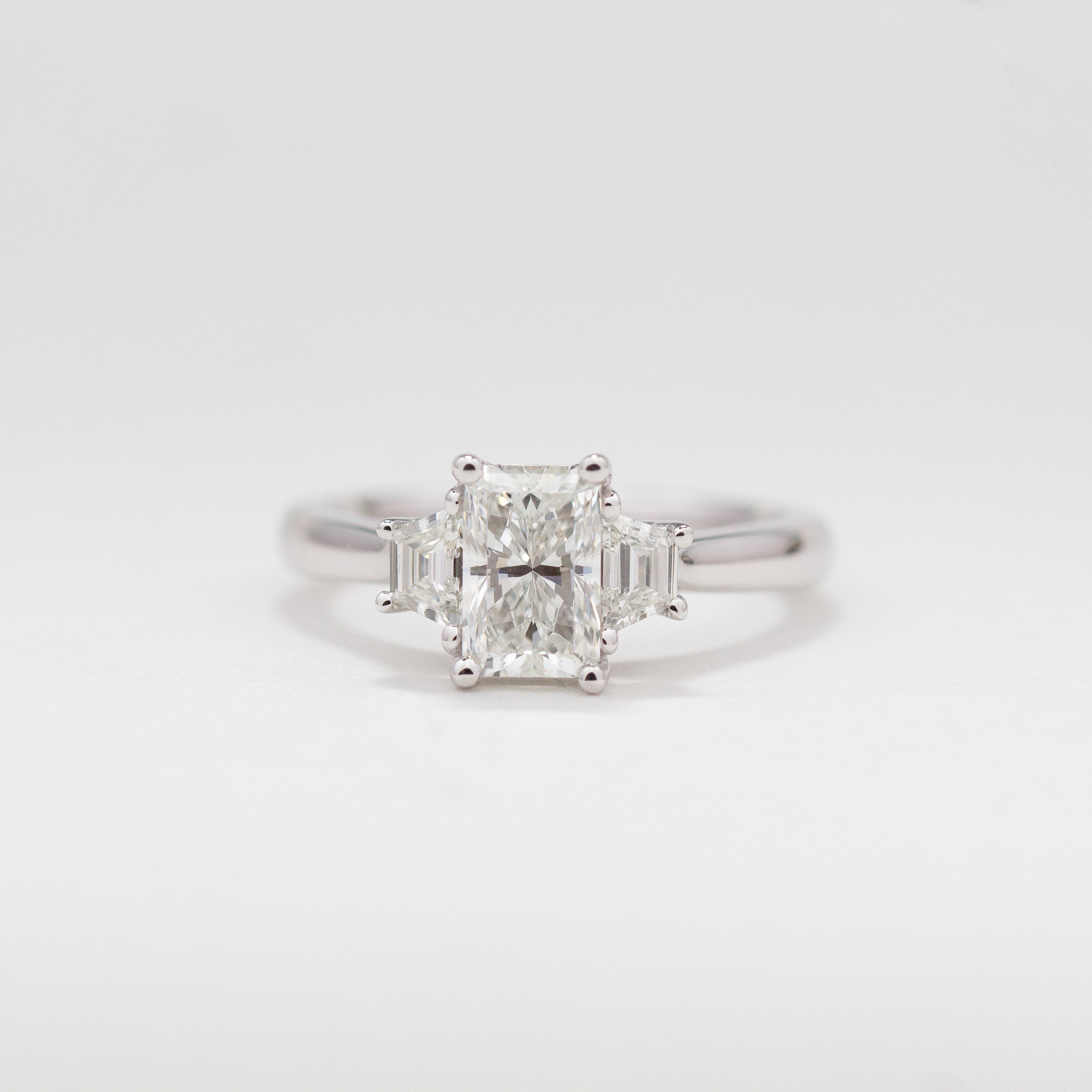 18ct White Gold Radiant and Trapezoid Diamond Ring