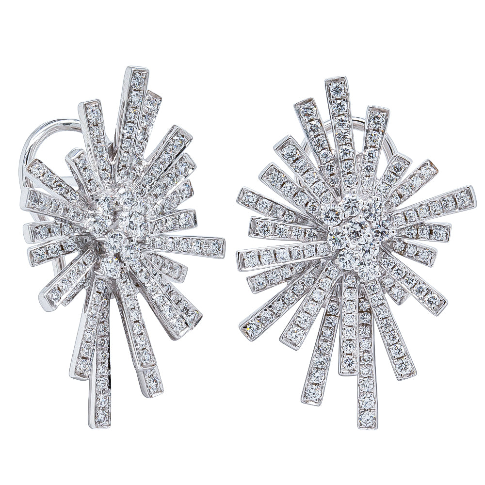 She will sparkle with sophistication in these glittering diamond Starburst stud earrings. Crafted to perfection from luxurious 18ct white gold from our signature 1899 collection, these delightful Deco style earrings feature a starburst of shimmering white diamonds exploding from the centre. You won't be able to take your eyes off her!
