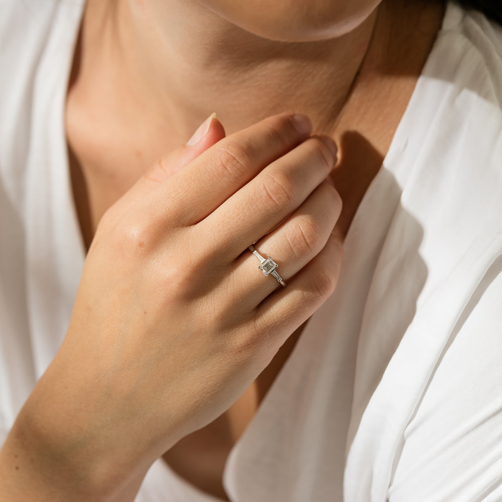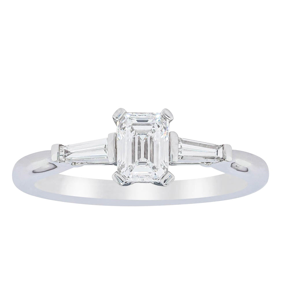 18ct White Gold Emerald-Cut and Taper-Cut Diamond Ring