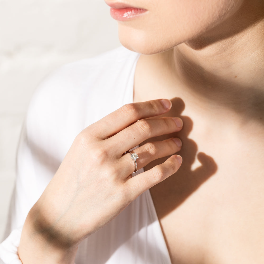 Distinctly beautiful, this diamond ring showcases four round brilliant cut diamonds that are set around the base in our high palladium 18ct white gold setting to accentuate this gorgeous Heritage old mine cut centre diamond.