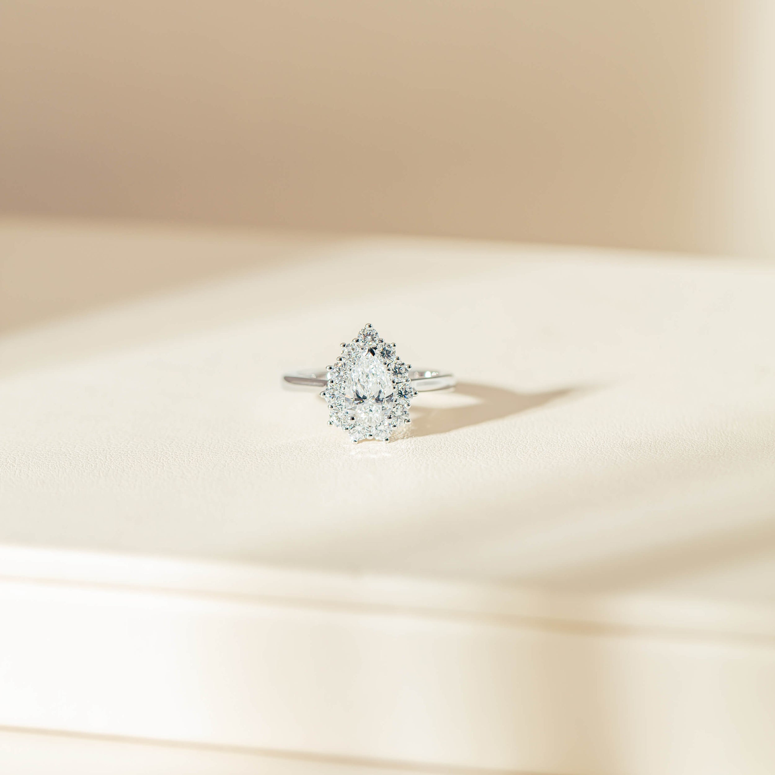 This pear cut natural diamond captivates with its beautifully proportioned facets, radiating brilliance and fine spectral flashes. The Belle setting complements the diamond’s graceful form, offering a breathtaking focal point that exemplifies the artistry of fine jewellery. More than a ring, it’s a testament to the enduring allure of natural diamonds and timeless craftsmanship.