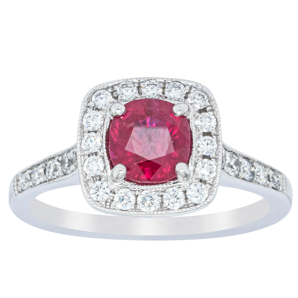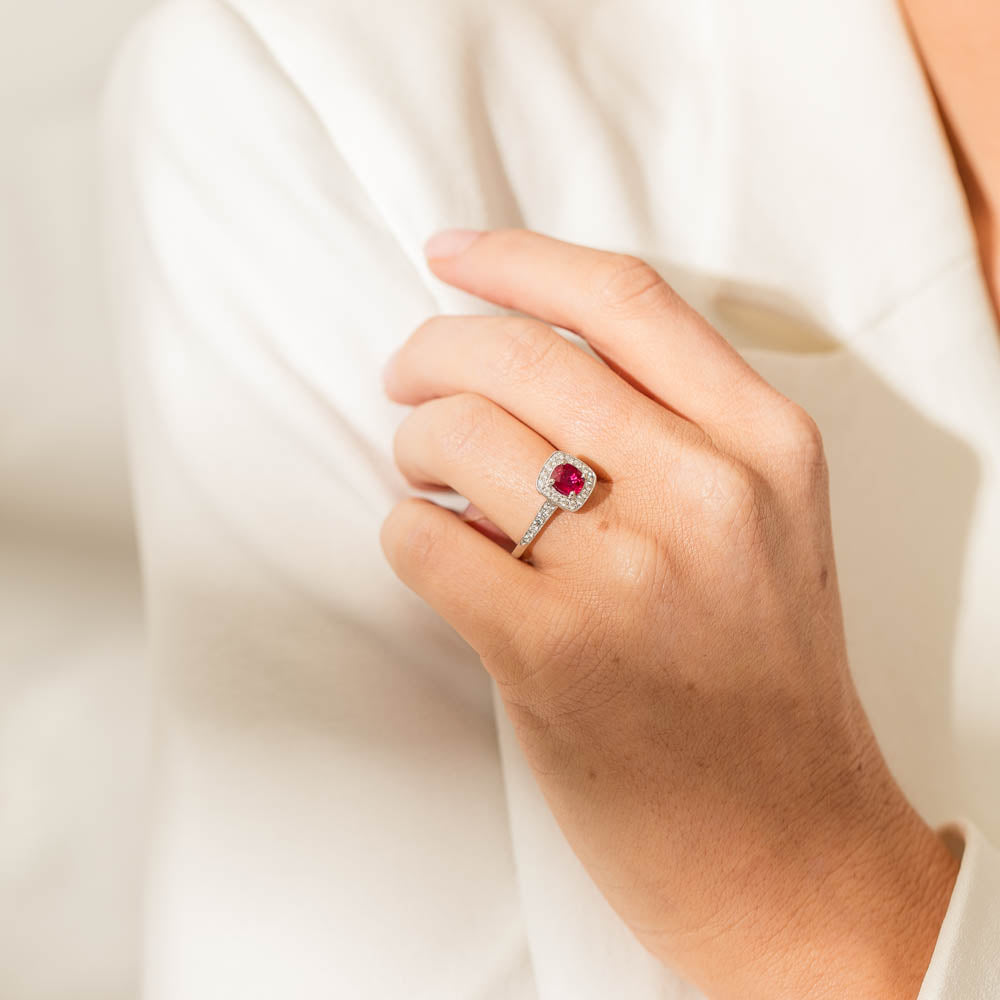 18ct White Gold Ruby And Diamond Halo Ring