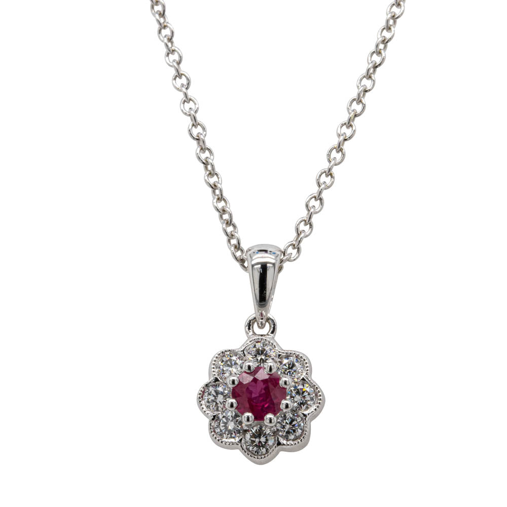 18ct White Gold Ruby & Diamond Pendant