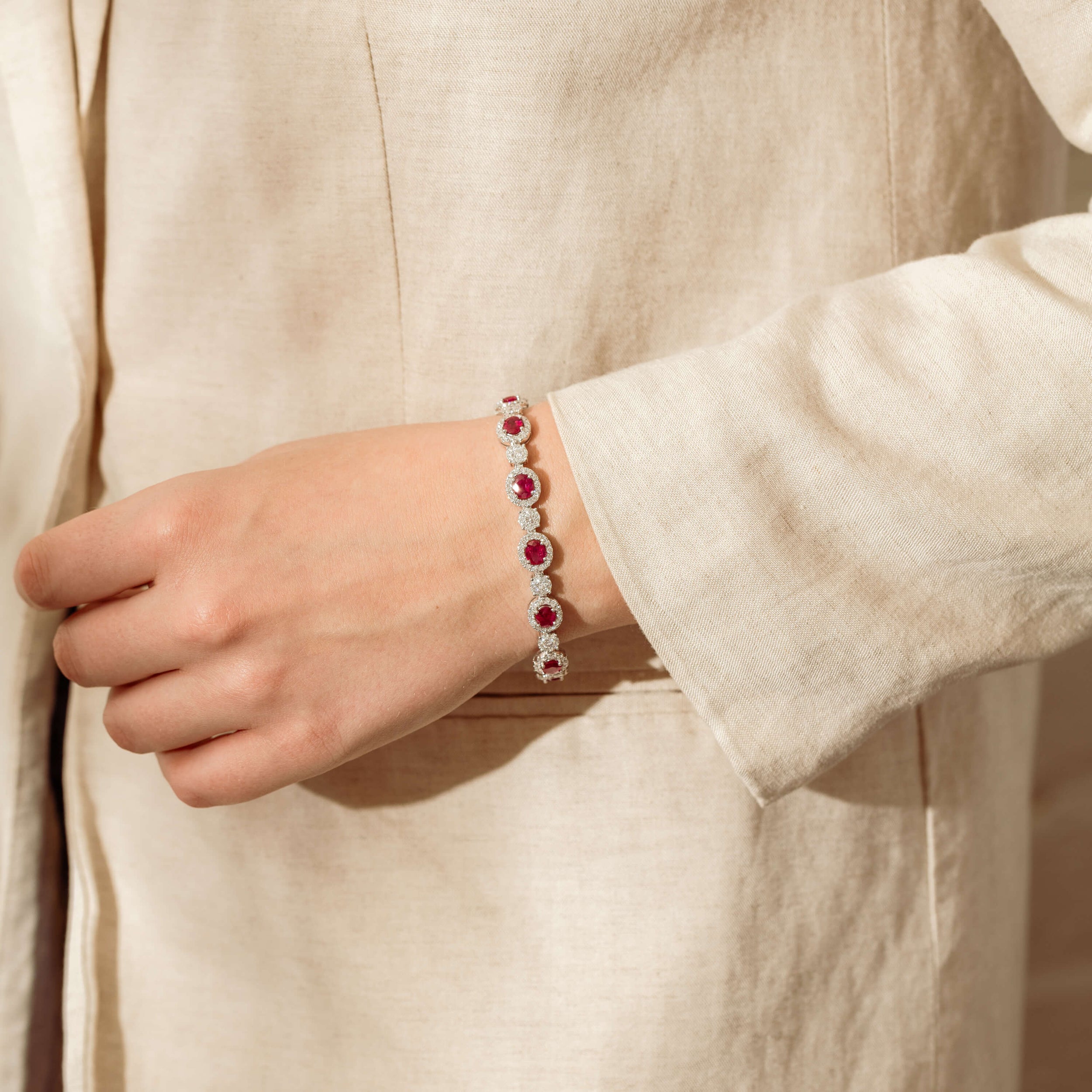 18ct White Gold Ruby & Diamond Halo Tennis Bracelet