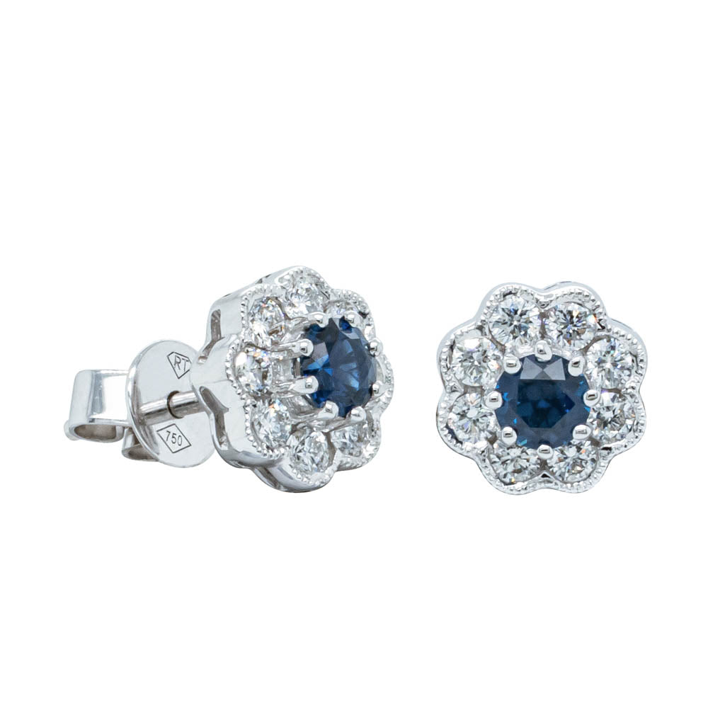 18ct White Gold Sapphire & Diamond Halo Stud Earrings