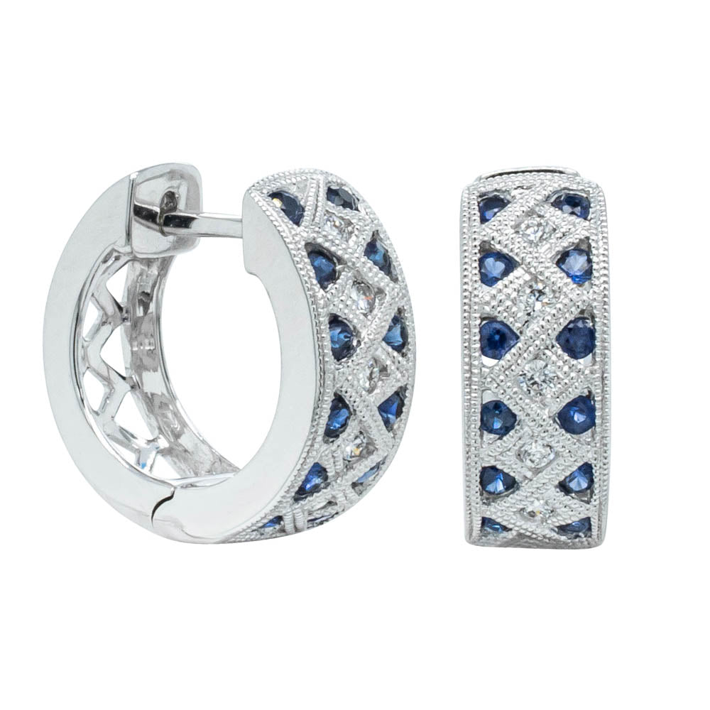 18ct White Gold Sapphire & Diamond Honour Hoop Earrings