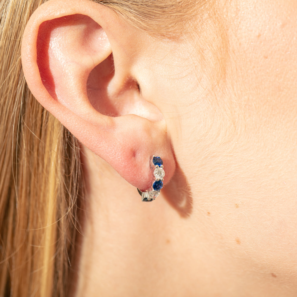 18ct White Gold Sapphire & Diamond Panorama Hoop Earrings