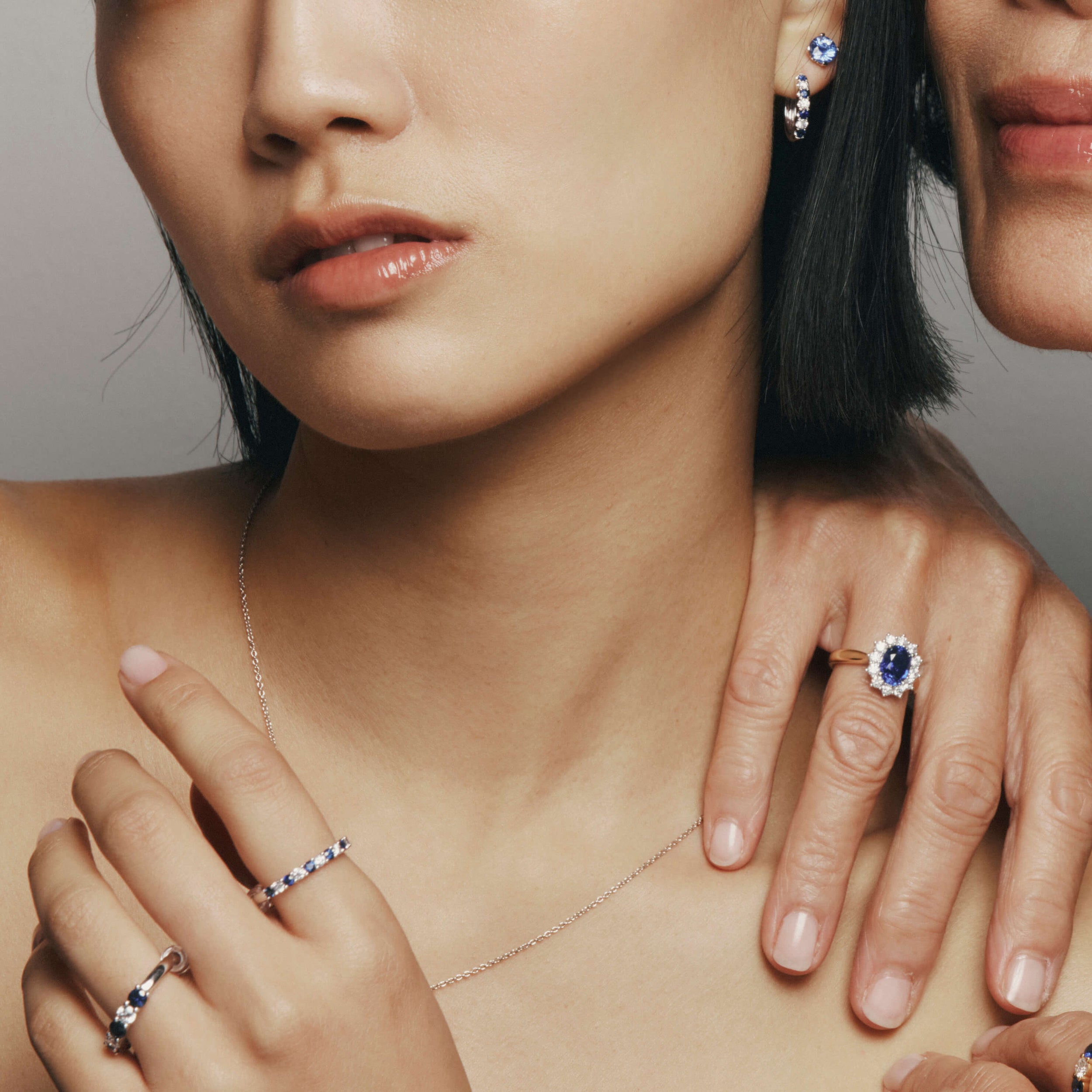 Model wearing natural diamond and gemstone jewellery from the 1899 Collection