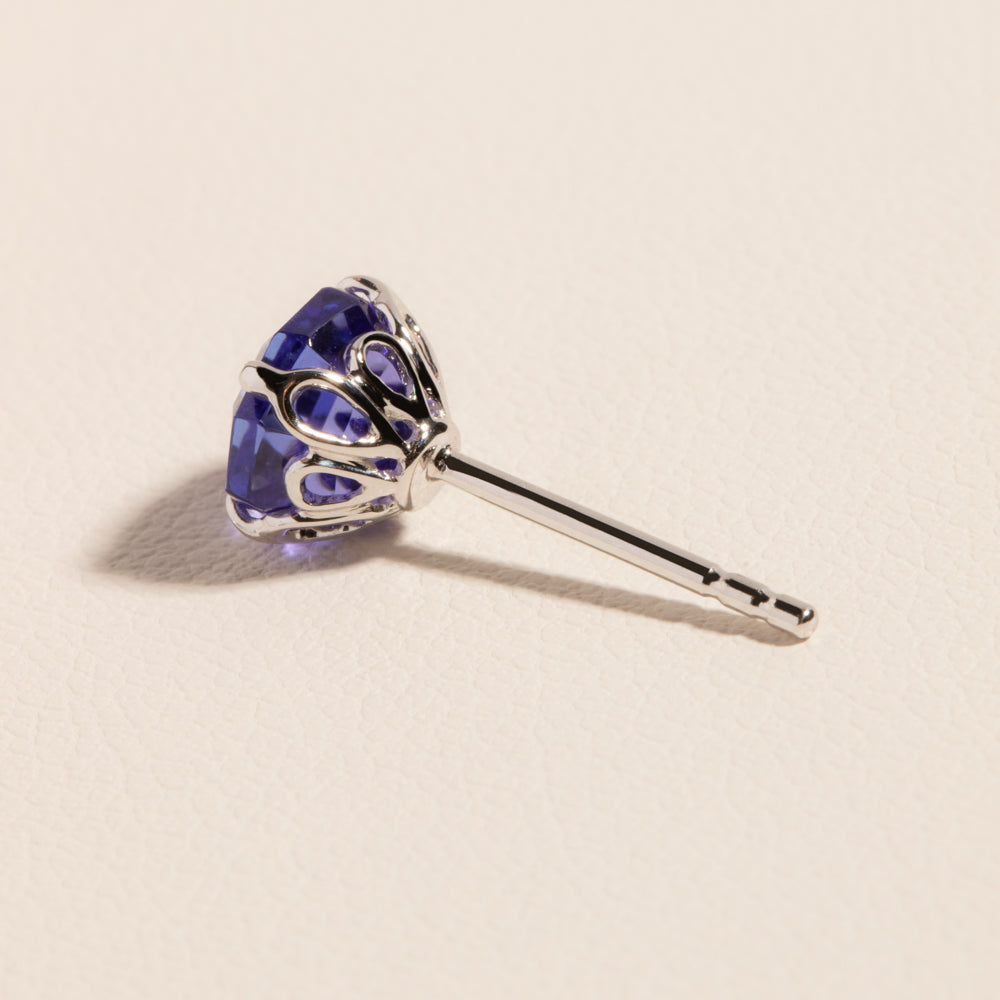 Carefully crafted in 18ct white gold, these stunning Octavia stud earrings boast two custom cut eight-sided tanzanites resting on a four claw setting.
