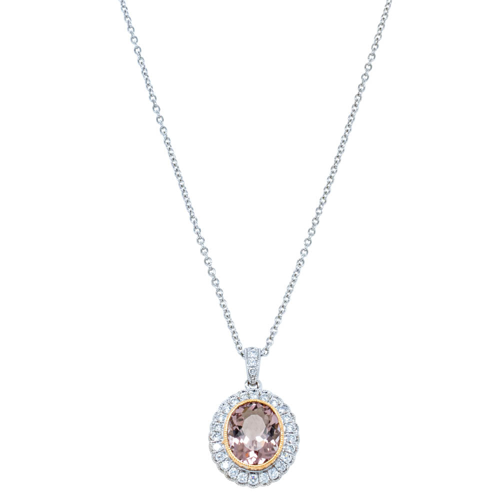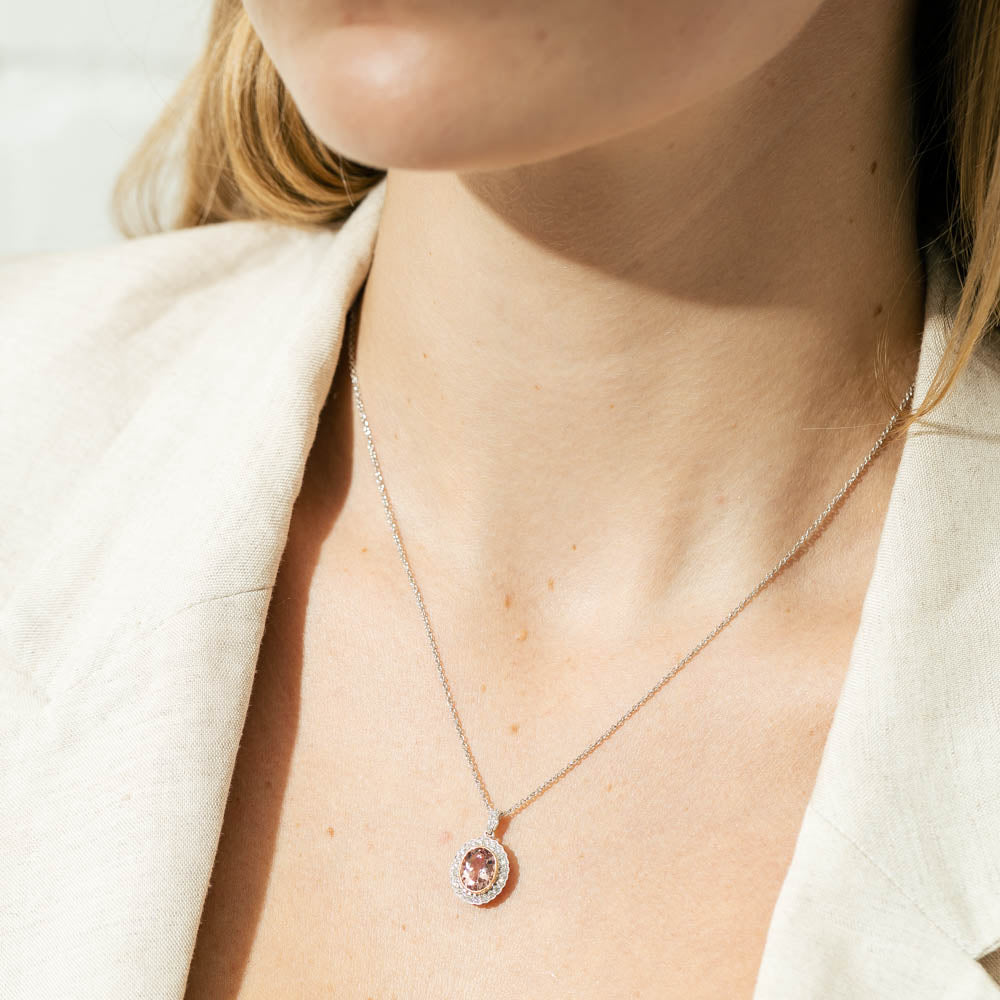 18ct White & Rose Gold 1.64ct Morganite & Diamond Halo Pendant