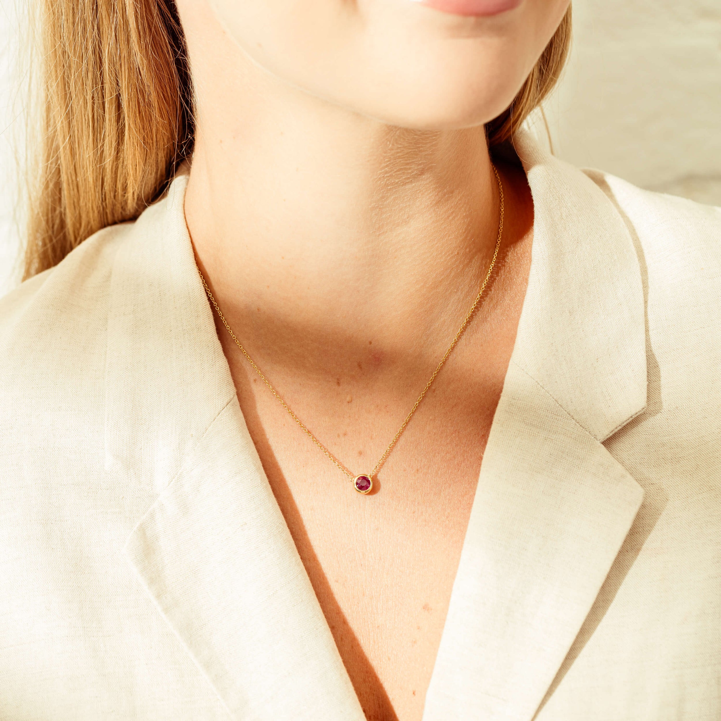 This elegant 1.24ct round faceted Ruby Natalia pendant is perfect to mark and celebrate a special milestone in your life. Carefully crafted to perfection from divine 18ct yellow gold from our signature 1899 collection.