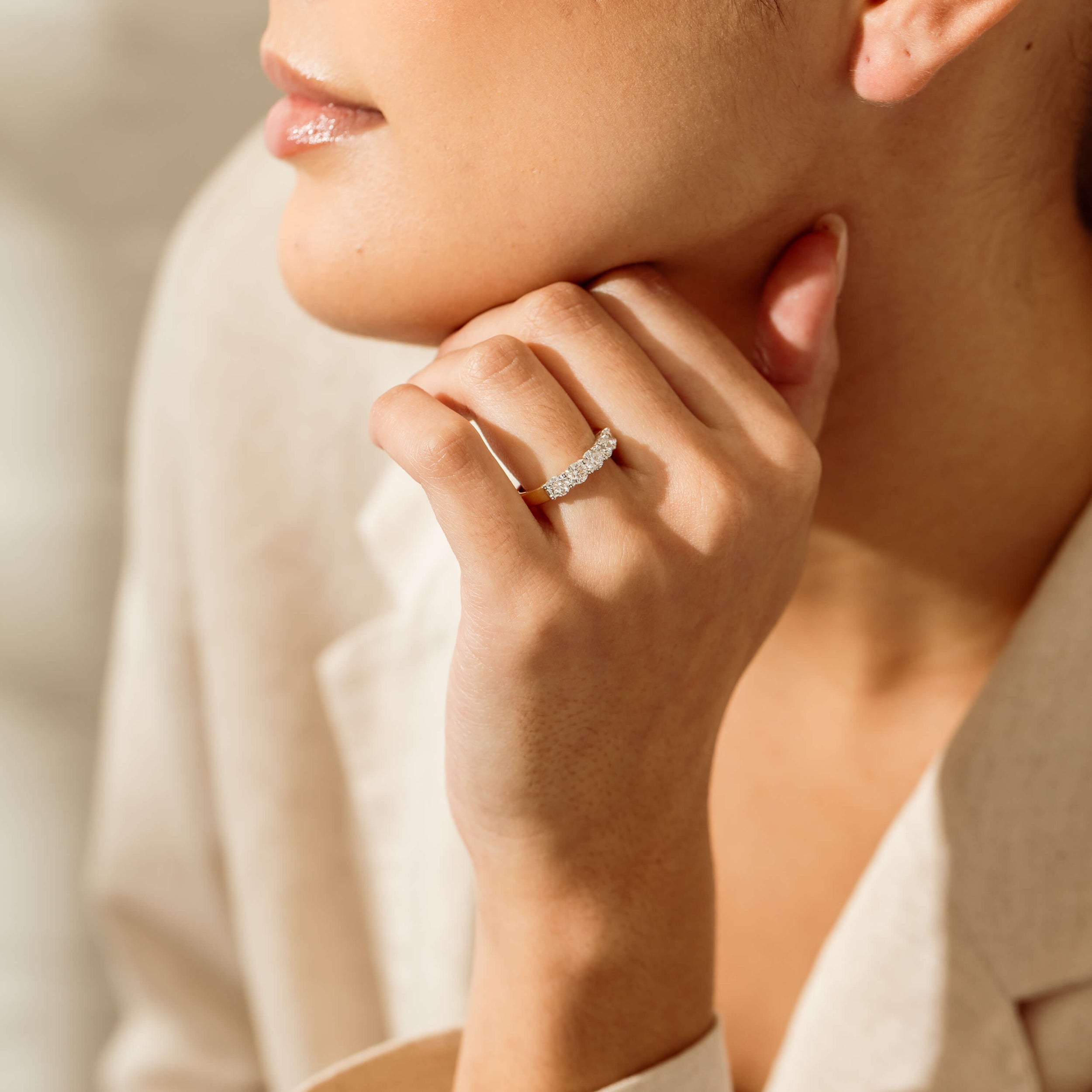 Panorama rings feature a classic prong setting which allows the gemstones to nestle close to another, a perfect reflection of the relationship it represents. Each diamond sits low to allow this style to be worn elegantly next to other rings – an ideal wedding band or stacking ring which is so stunning in its simplicity you will also look forward to letting it shine on its own.