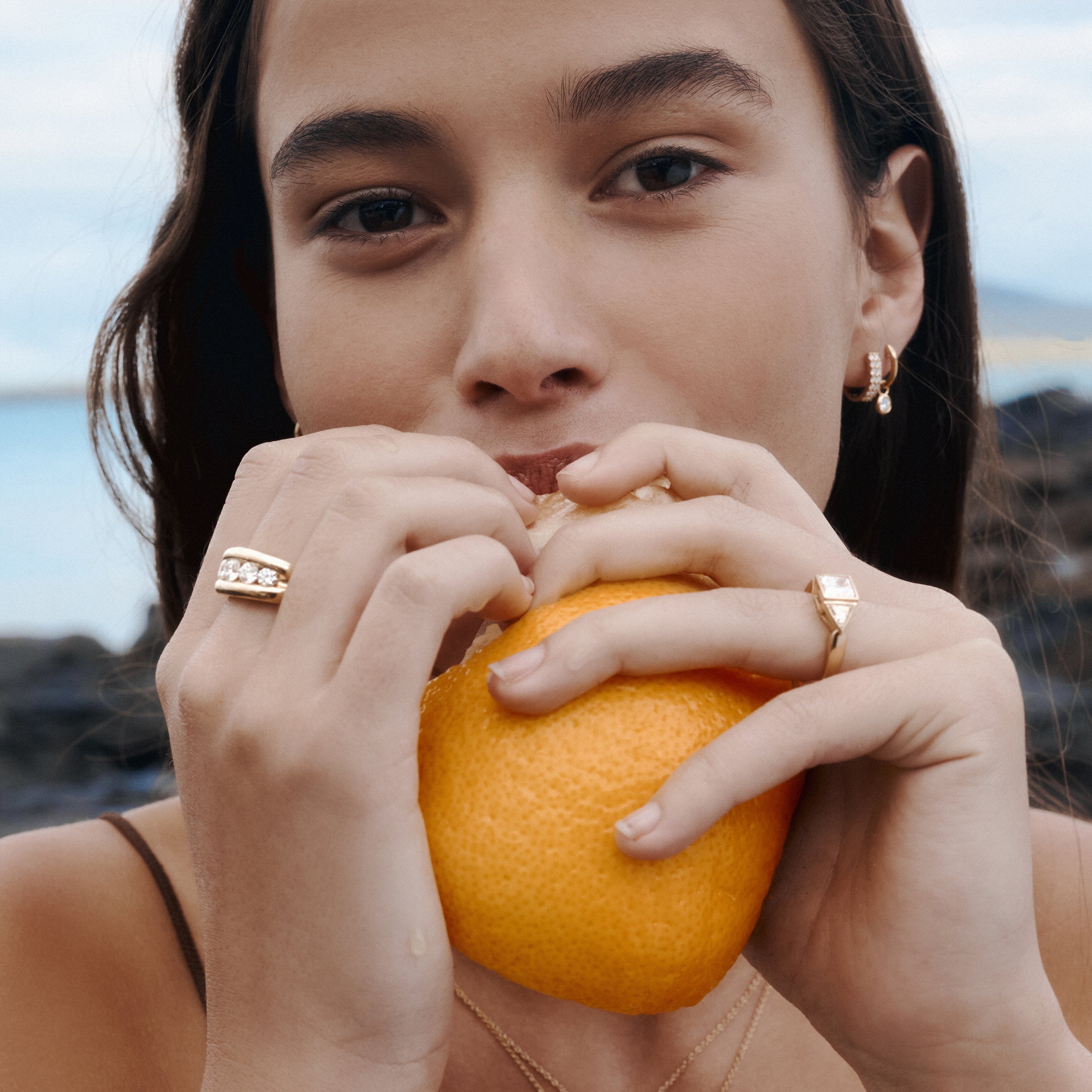 Model wearing natural diamond and gemstone jewellery from the 1899 Collection