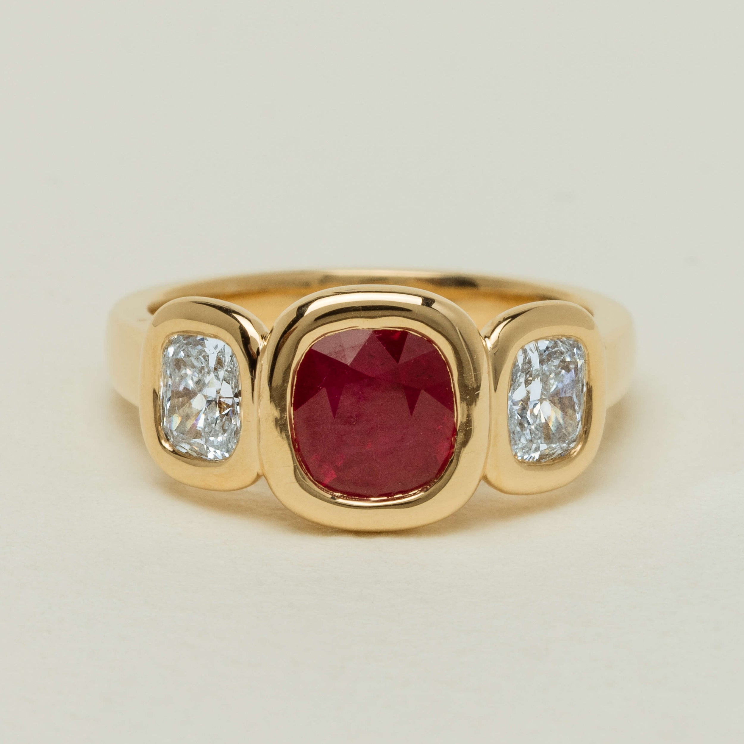 18ct Yellow Gold 1.52ct Ruby & Diamond Three-Stone Natalia Ring