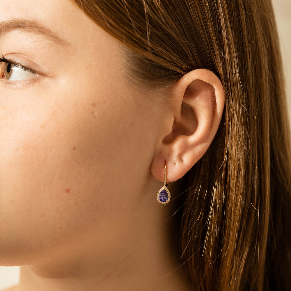 View BagThe brilliance of colour is captured in these tanzanite and diamond earrings featuring pear faceted tanzanites framed by round brilliant cut diamonds to make a luminous statement in these gorgeous mini Sierra earrings from our signature 1899 collection. Crafted in beautiful 18ct yellow gold.