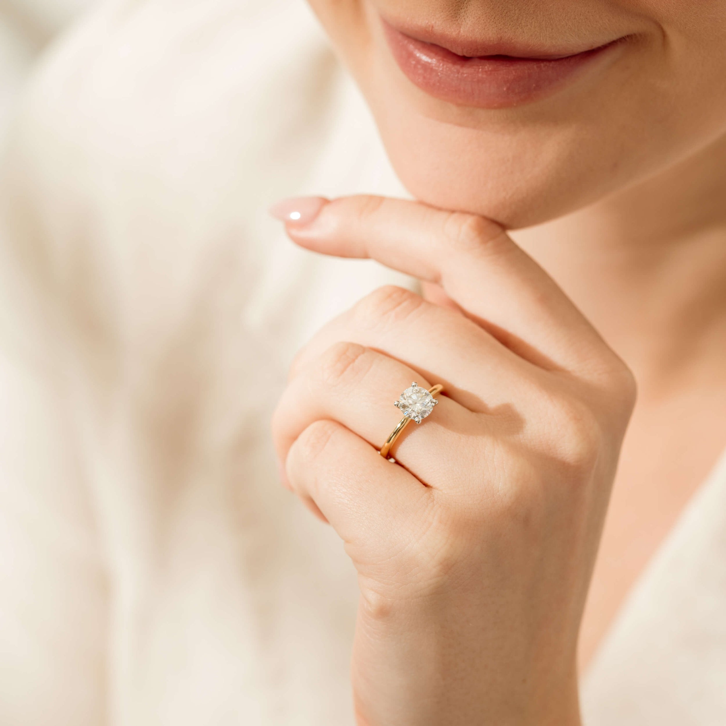 A fine minimalist design, Melba was named after the Greek word for 'slender'. The barely-there slim band allows the diamond to float above the finger.