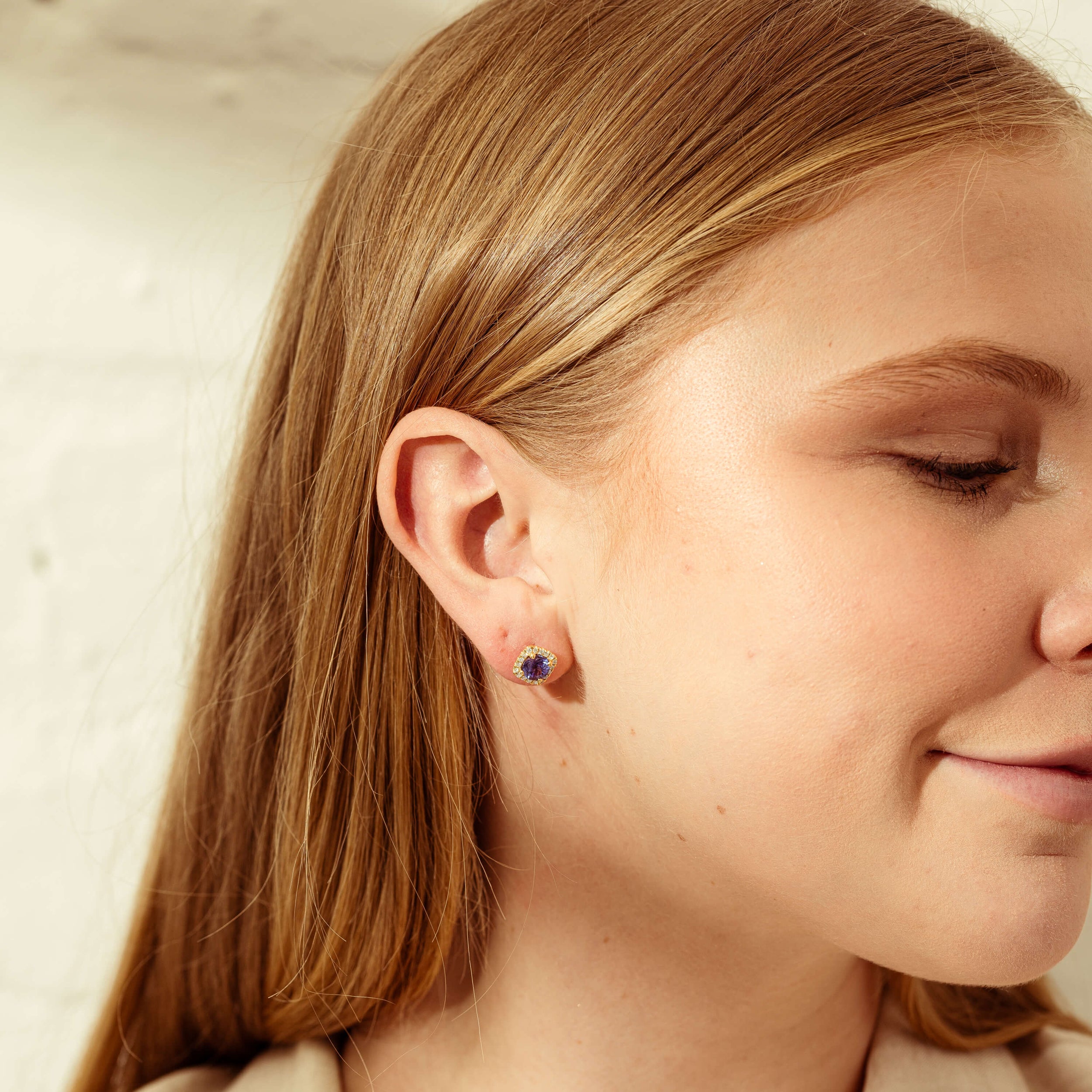 Add a sparkle to your everyday with these glittering tanzanite and diamond Peony earrings! This mesmerising duo boasts two exceptional round faceted tanzanites framed by a shimmering diamond halo. Carefully crafted from luxurious 18ct yellow gold from our signature 1899 collection.