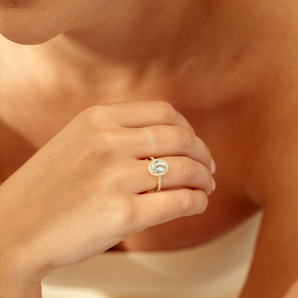 Calming blue oval Aquamarine combines with exceptional sparkle to make a luminous statement in this gorgeous Sierra ring from our signature 1899 collection. Crafted in beautiful 18ct yellow gold.