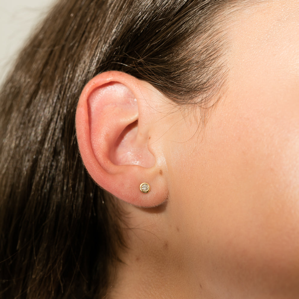 18ct Yellow Gold .12ct Diamond Bezel Set Stud Earrings