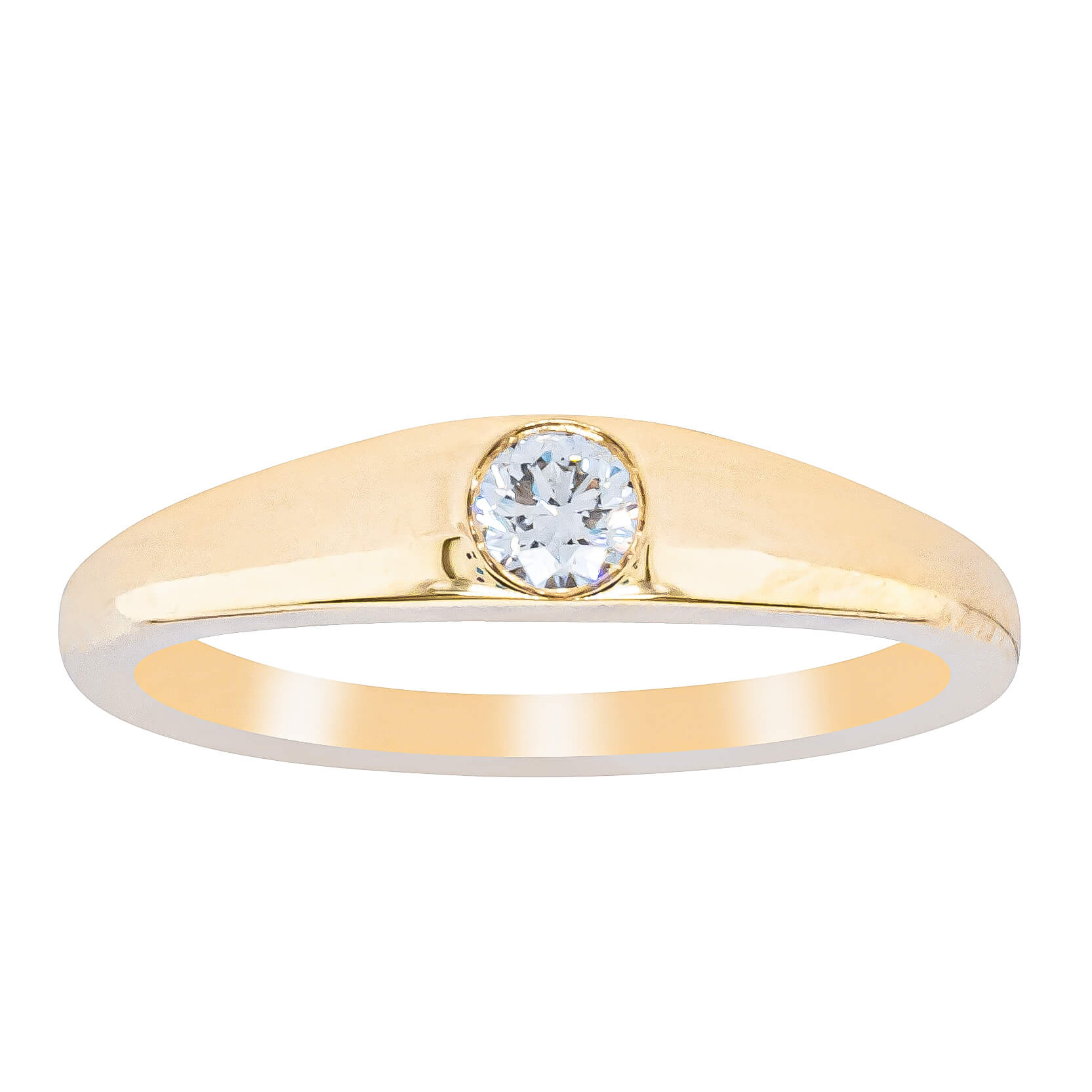 Beautifully crafted from 18ct yellow gold, the Gypsy ring boasts an elegant tapered design and features one .16ct round brilliant cut diamond, adding sophistication to any outfit. With its unique shape and stunning shine, it's the perfect accessory for those looking to make a statement.