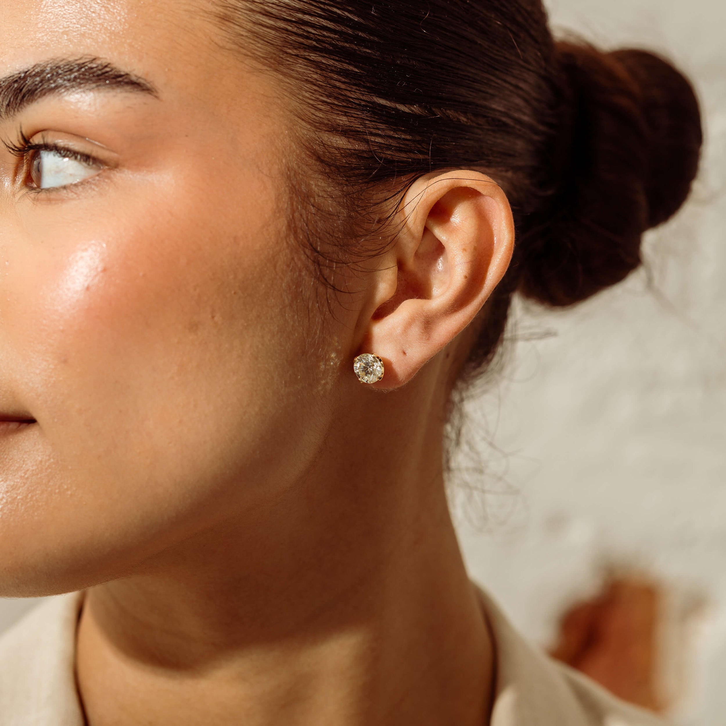 Model wearing natural diamond Blossom Studs and Blossom Drop Earrings