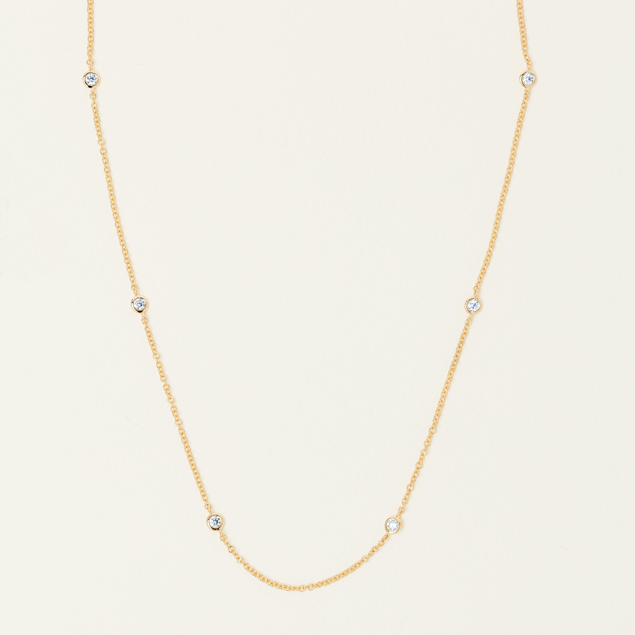 With its delicate and feminine setting the subtle bezel-set diamonds beautifully dance on a 18ct yellow gold chain, catching in the light symbolising a truly free spirit.