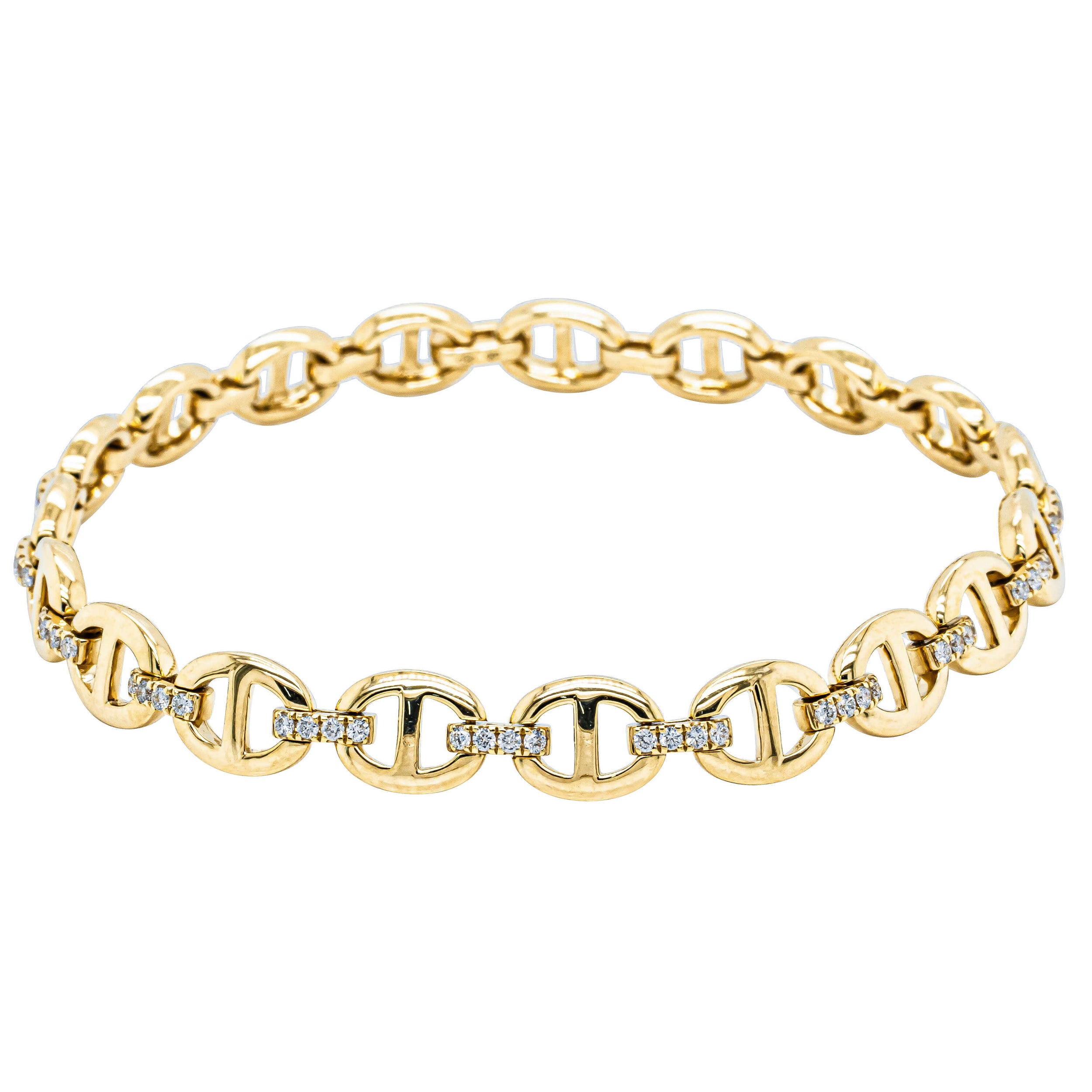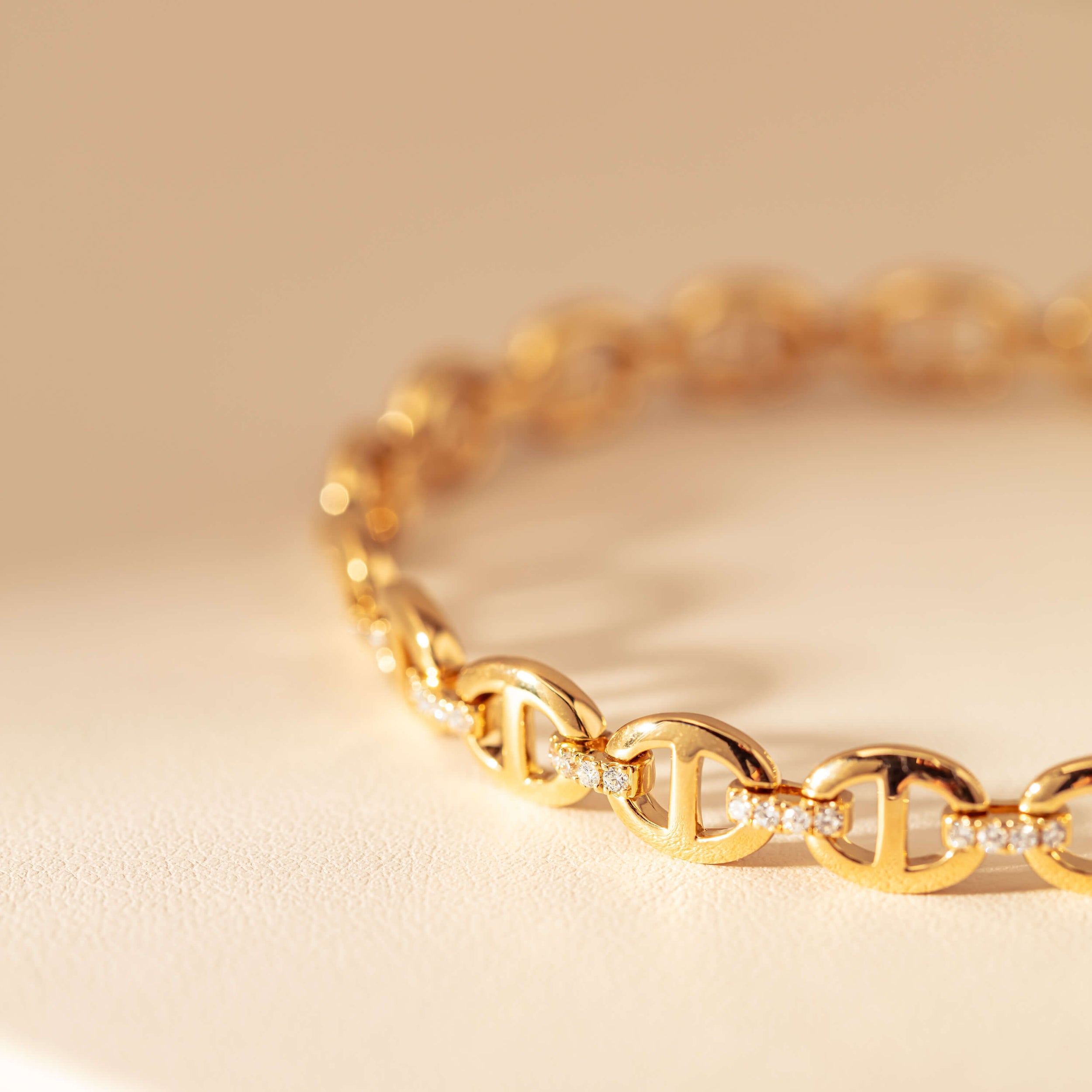 The perfect addition to your collection! This diamond oval link bracelet is carefully crafted from 18ct yellow gold and features shimmering round brilliant cut diamonds that sparkle from each and every angle. You will never want to take it off!