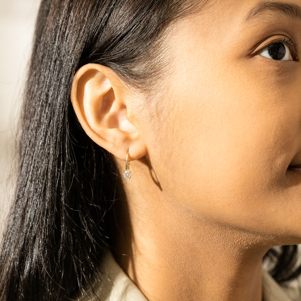 Model wearing natural diamond Blossom Studs and Blossom Drop Earrings