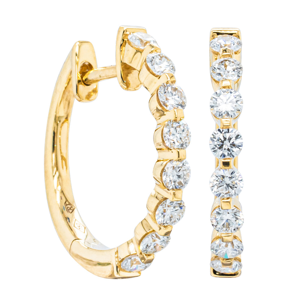 Boasting .69ct of round brilliant cut diamonds along the front of each earring, these 18ct yellow gold crafted hoop earrings offer timeless sophistication and an elegant glisten from every angle. Enjoy a classic style with refined beauty.