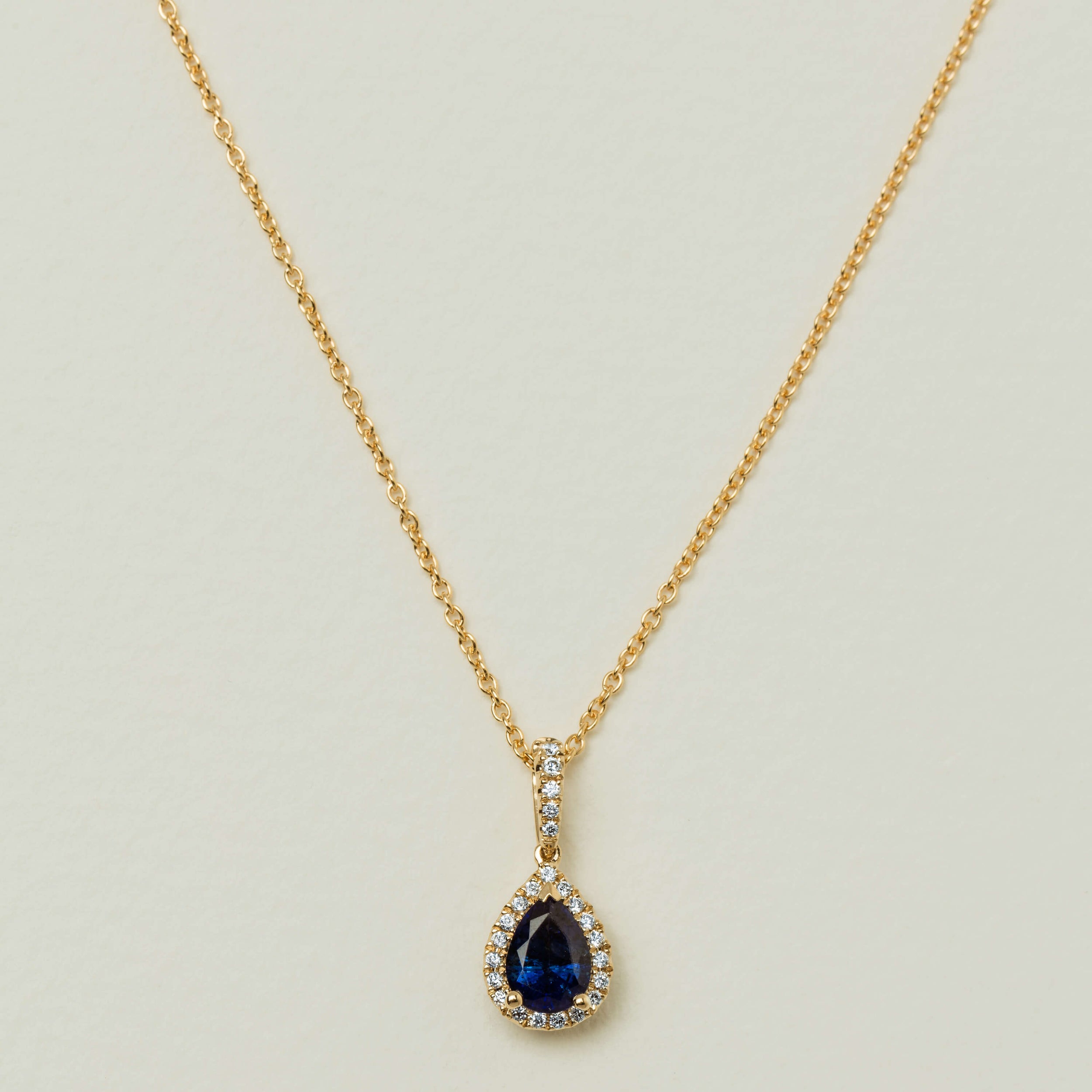 View BagInspired by the Spanish word "Sierra," meaning mountain range, this pendant embodies strength and timeless elegance. Nestled in a refined 18ct yellow gold setting from our signature 1899 collection, a pear-shaped sapphire forms the centerpiece, encircled by a halo of sparkling diamonds reminiscent of mountain peaks. Gemmological testing revealed characteristics corresponding to those of a natural Sapphire from Sri Lanka.
