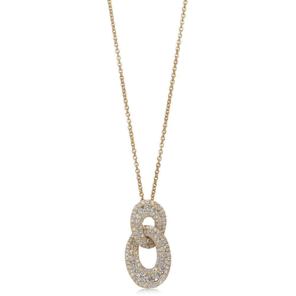 Surprise her with the diamonds she deserves! This exquisite 18ct yellow gold diamond pendant boasts an array of sparkling round brilliant cut diamonds set in an elegant figure 8 shaped mount. She will receive many compliments!