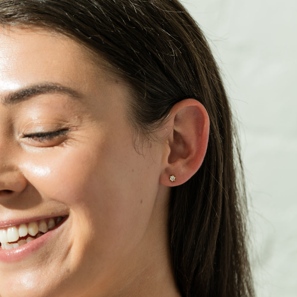 Featuring glittering round brilliant cut diamonds set in 18ct yellow gold, these six claw set studs are perfect for wearing day and night. They are secured with screw on scroll keepers.